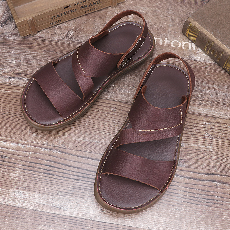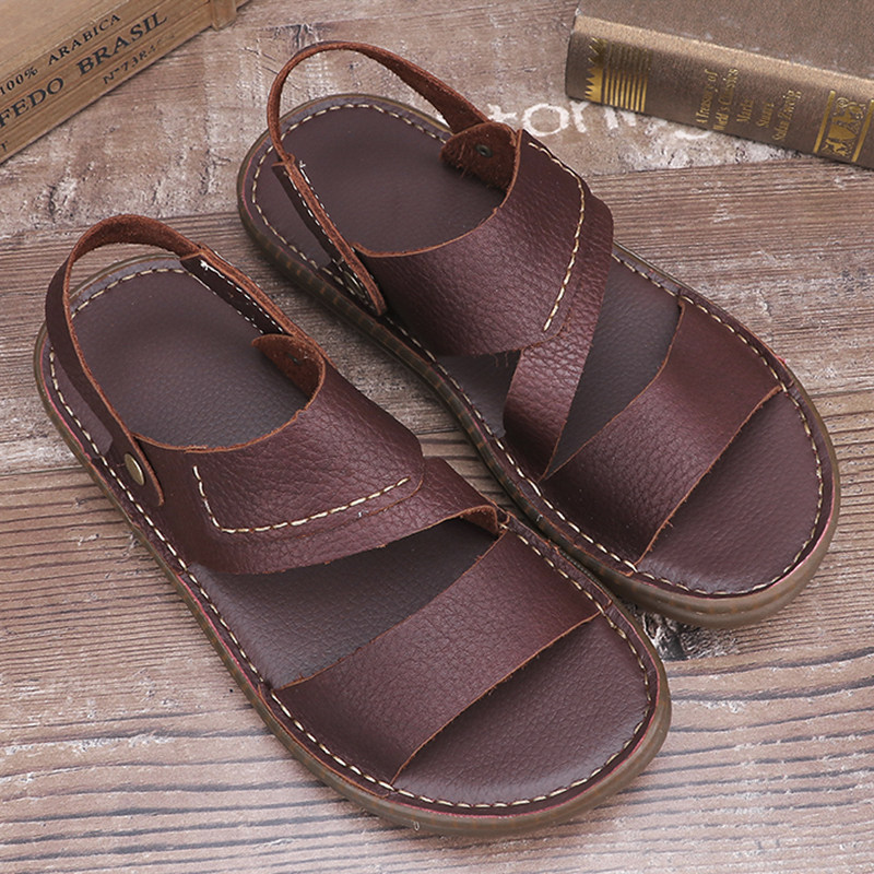 Кожаные нескользящие тапочки, летние босоножки, из натуральной кожи, мягкая подошва