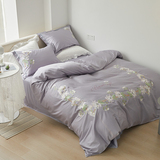 Хлопковый комплект, хлопковая простыня, пододеяльник, покрывало, с вышивкой, 4 предмета