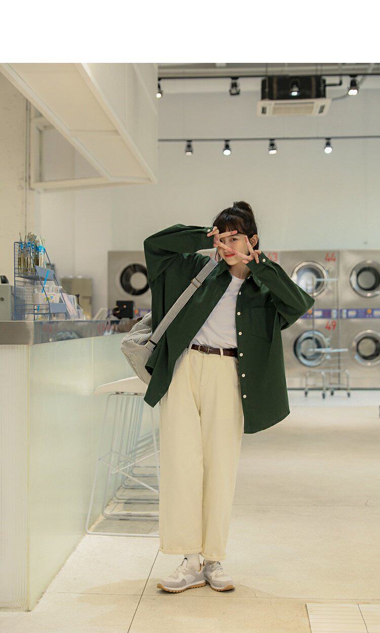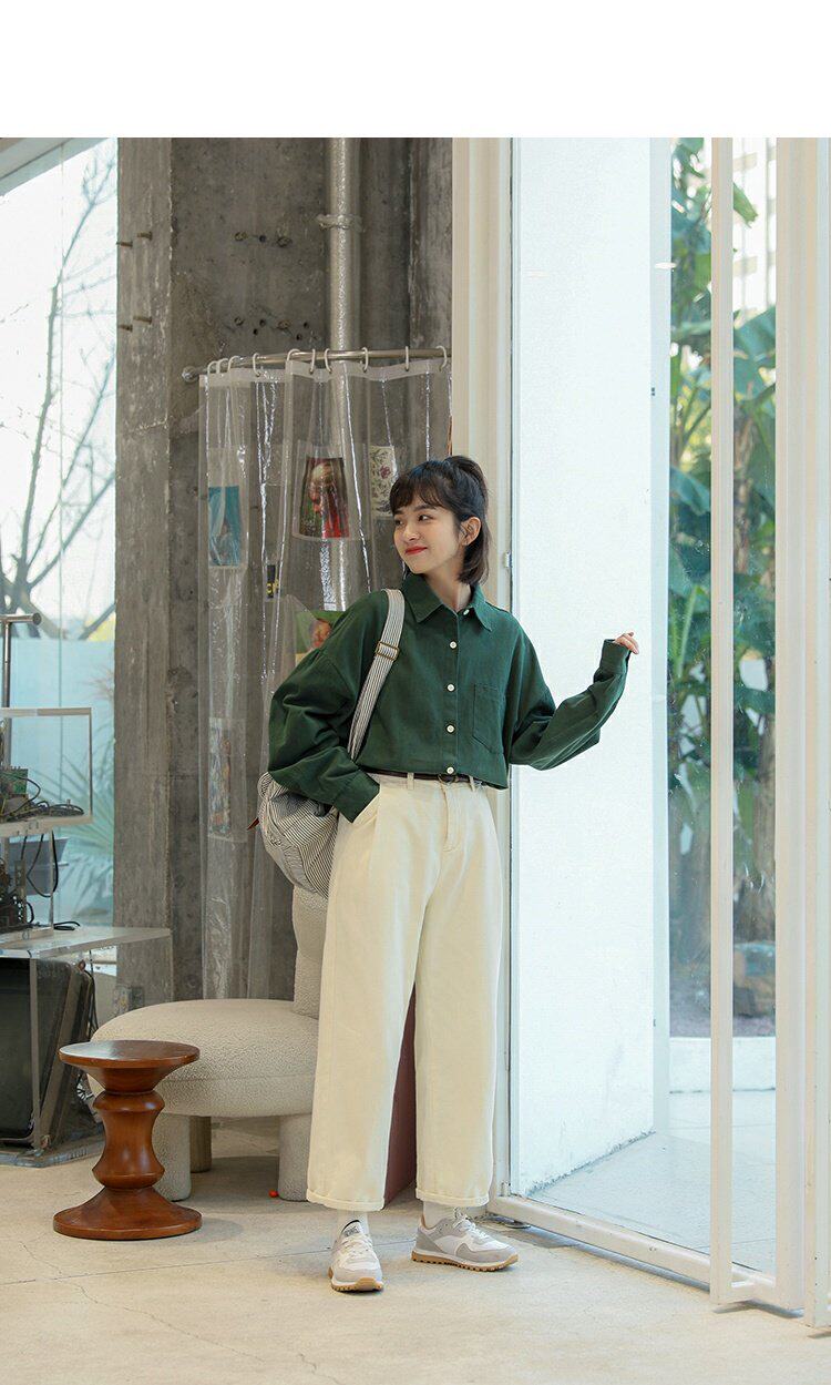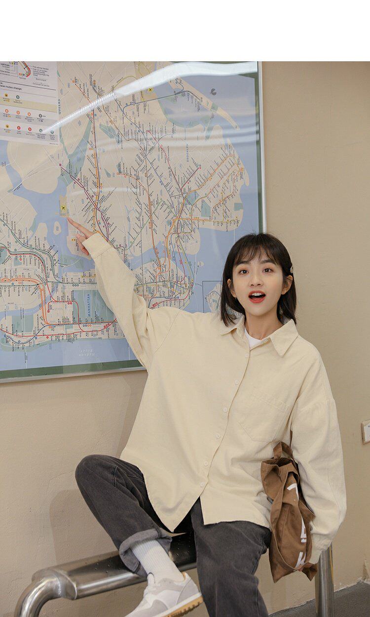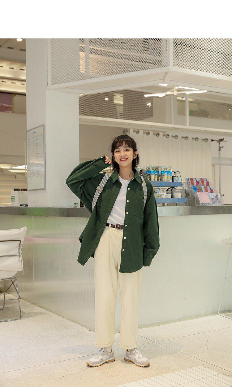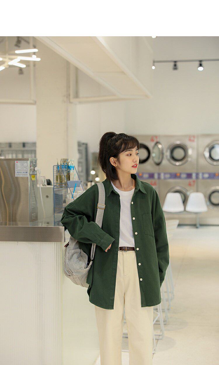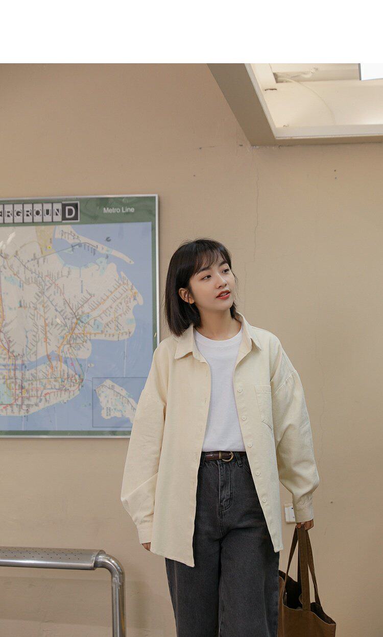 Ретро осенняя рубашка, кардиган, в корейском стиле, оверсайз, воротник поло