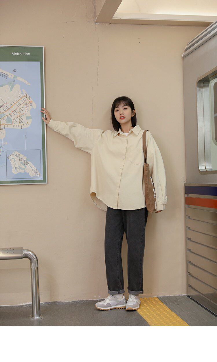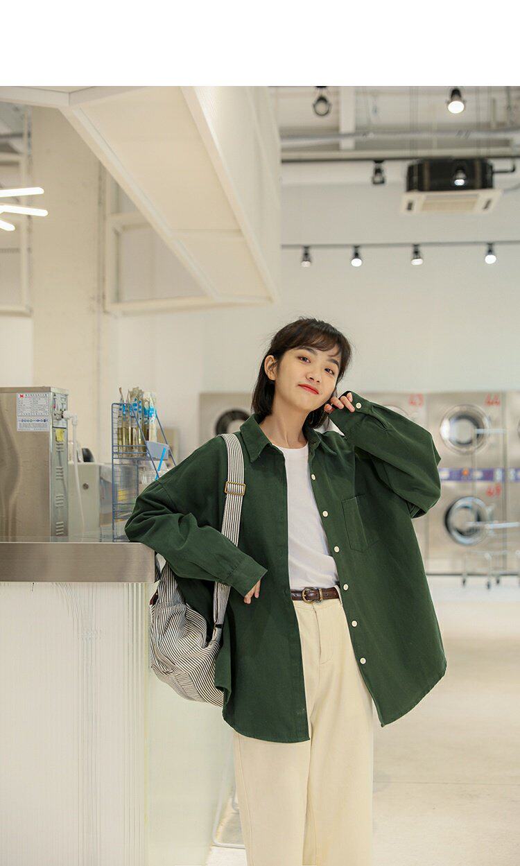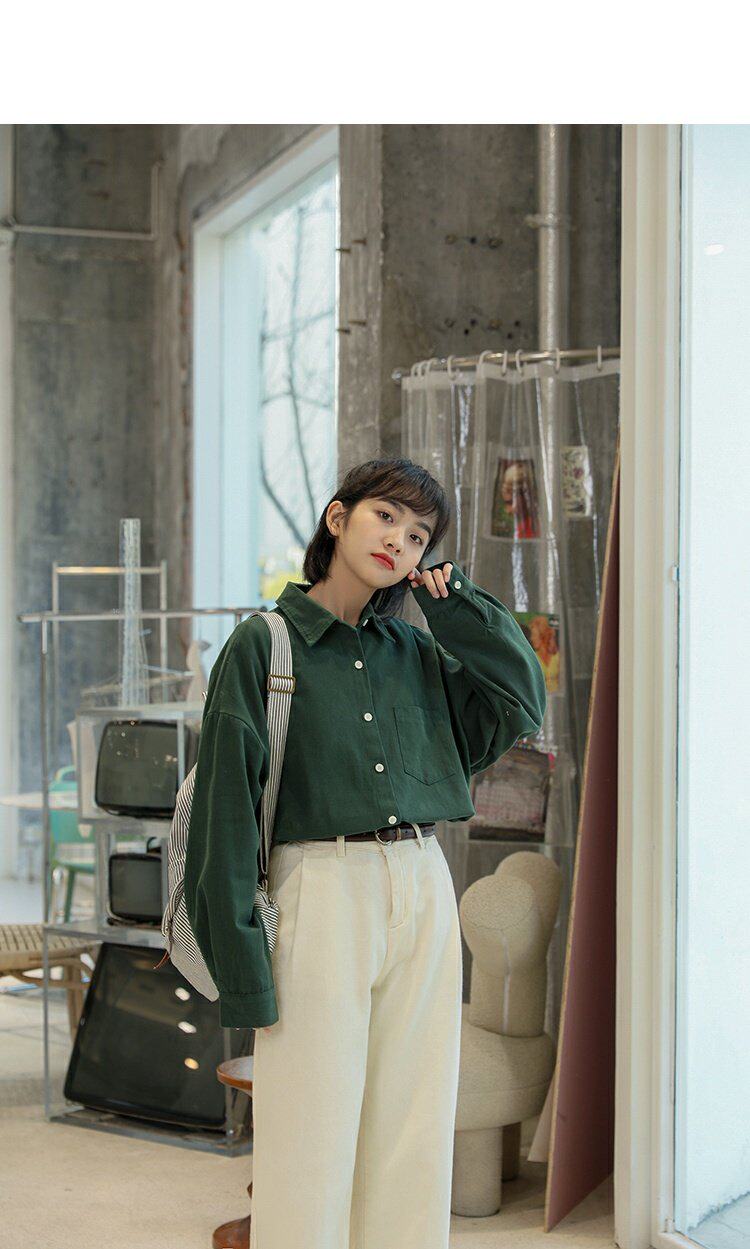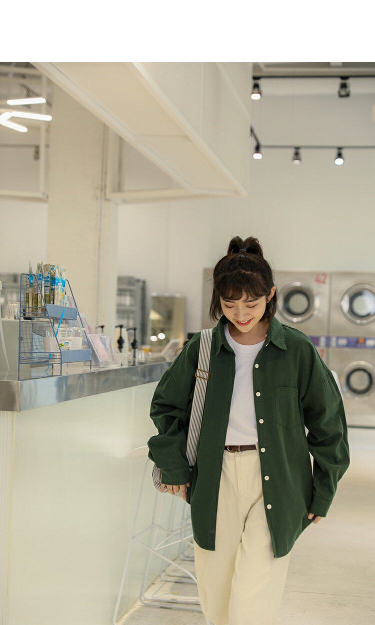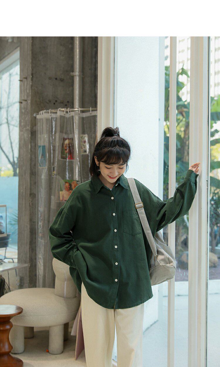 Ретро осенняя рубашка, кардиган, в корейском стиле, оверсайз, воротник поло