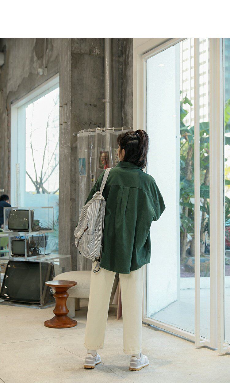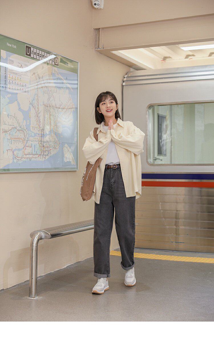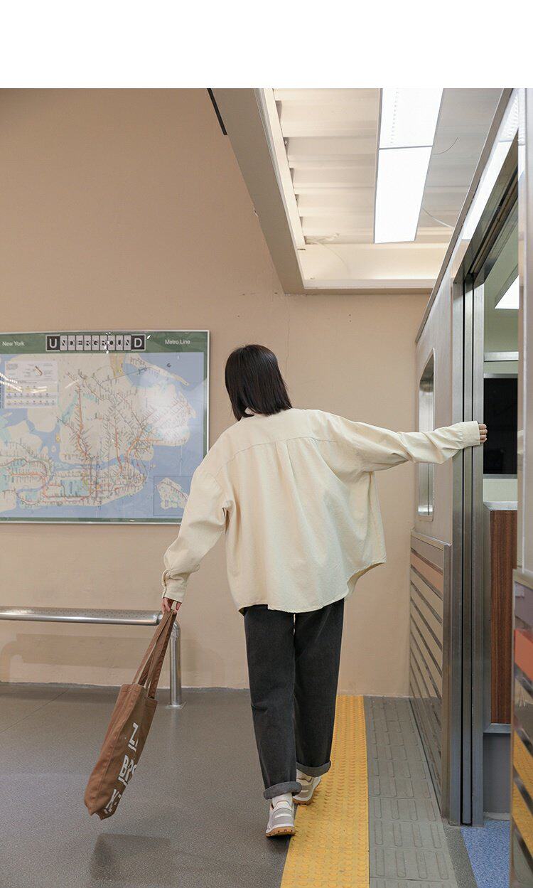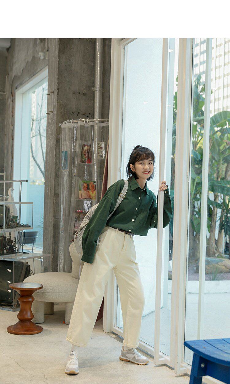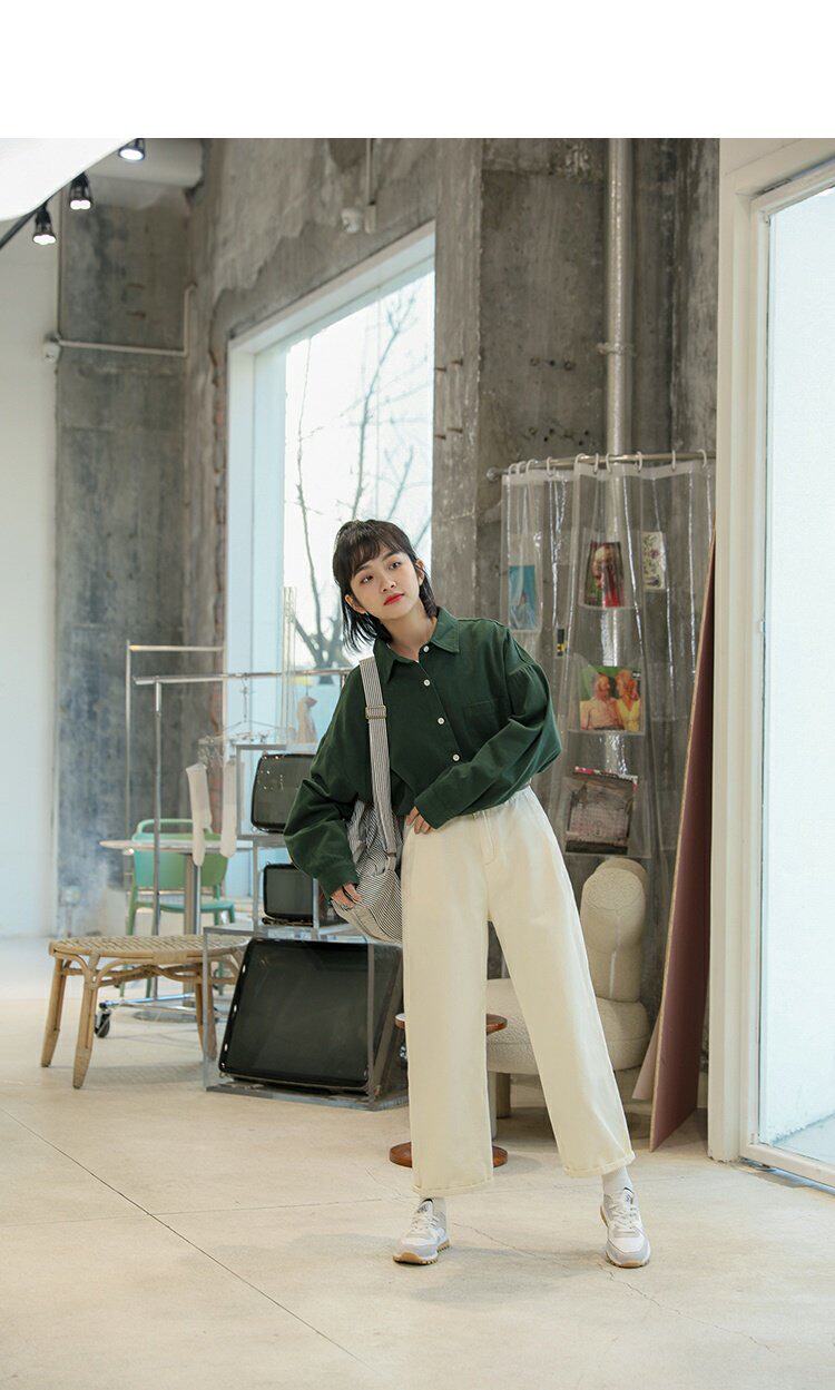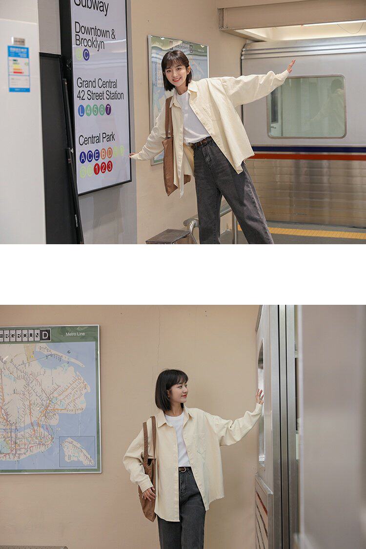 Ретро осенняя рубашка, кардиган, в корейском стиле, оверсайз, воротник поло
