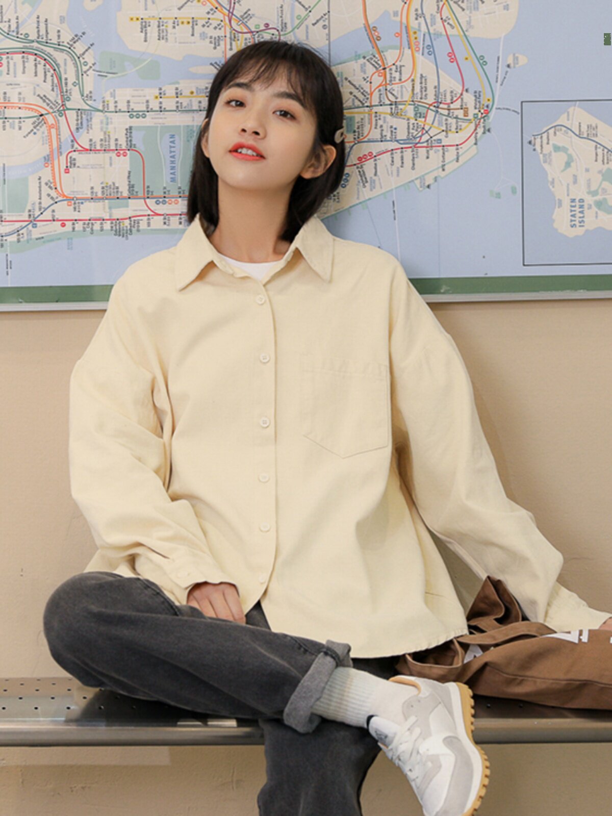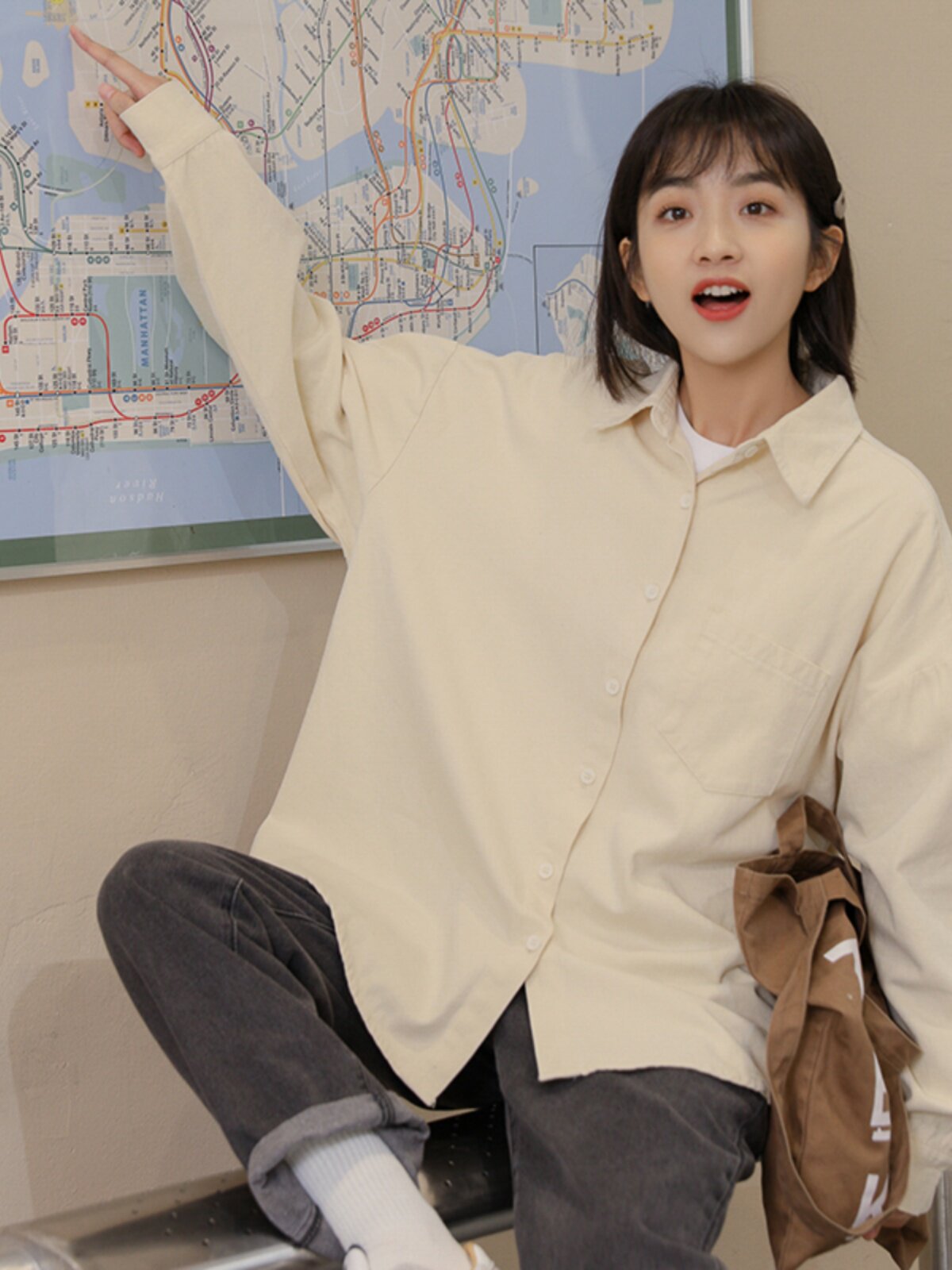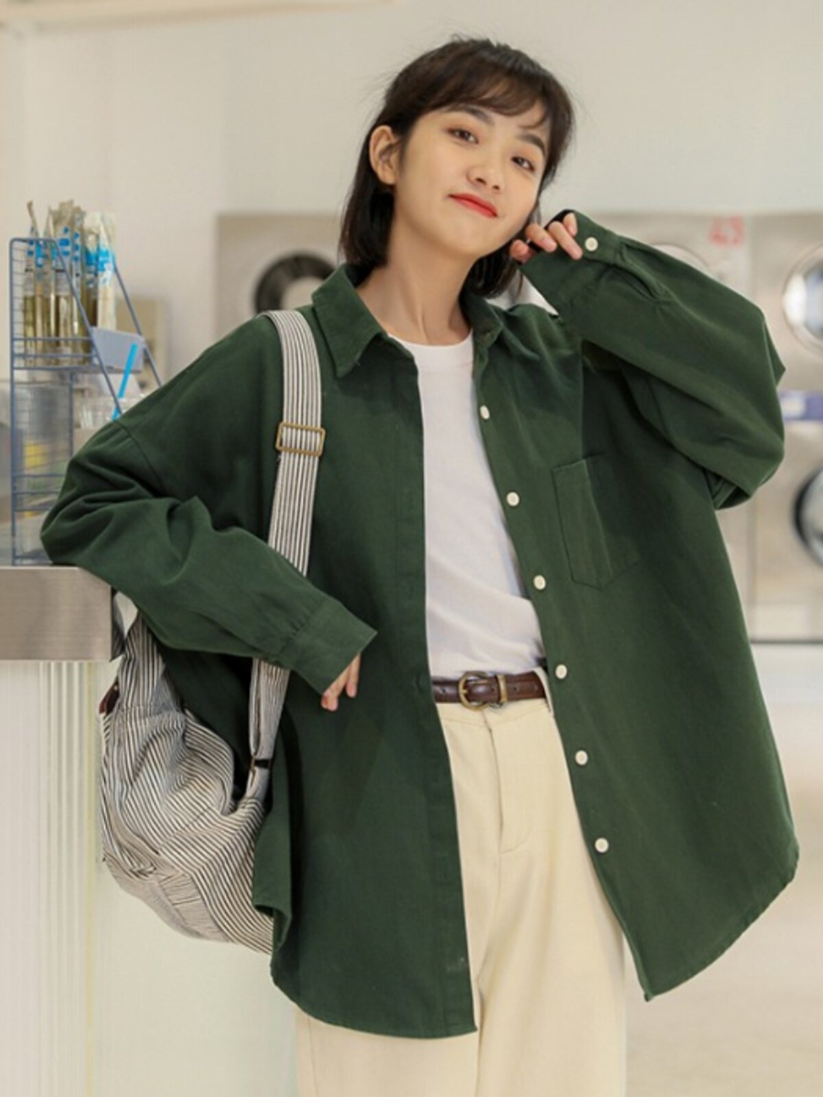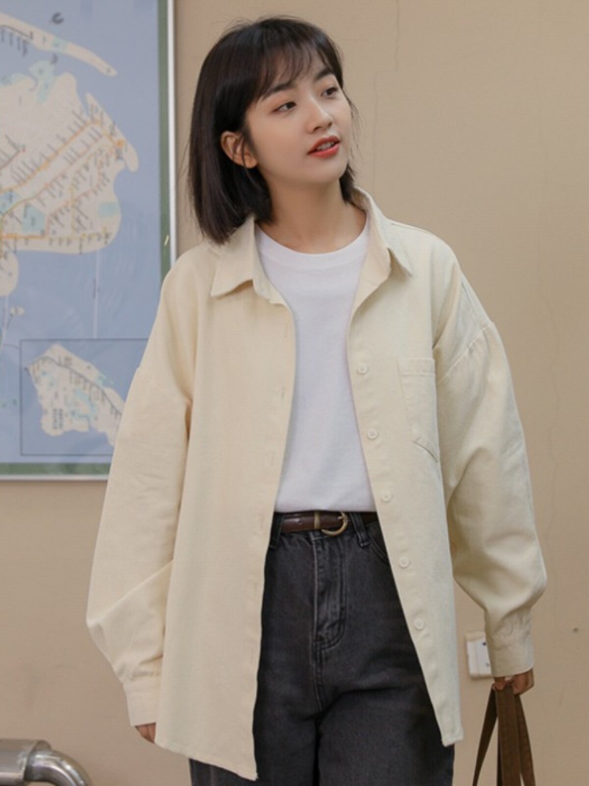 Ретро осенняя рубашка, кардиган, в корейском стиле, оверсайз, воротник поло