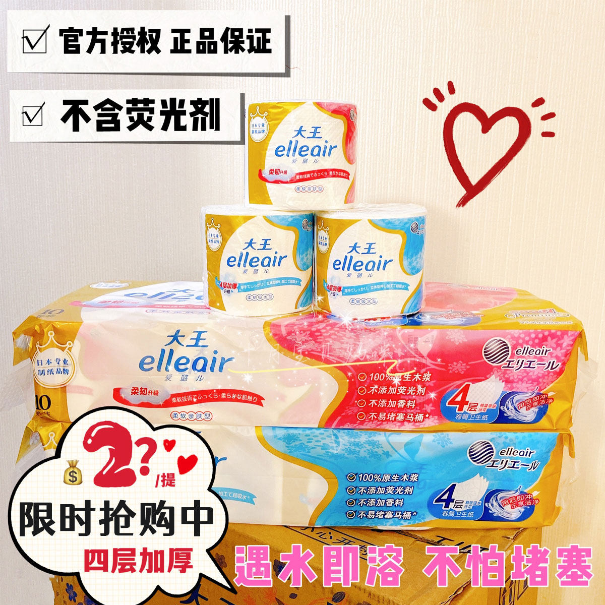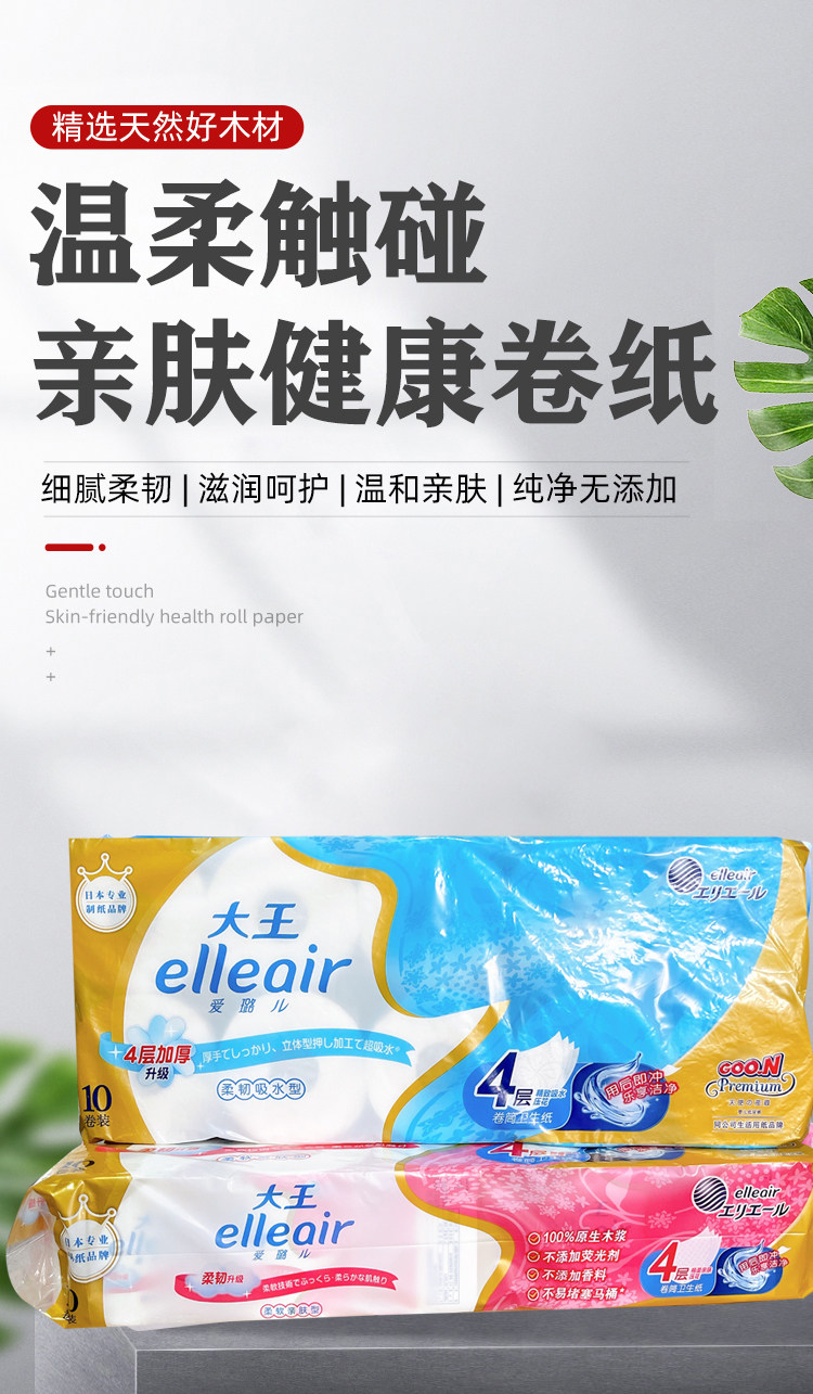 Король Айлуер Эллеаир туалетная бумага растворим 4 слоя утолщенной ультра -подсоверной туалетной бумаги 20 томов.