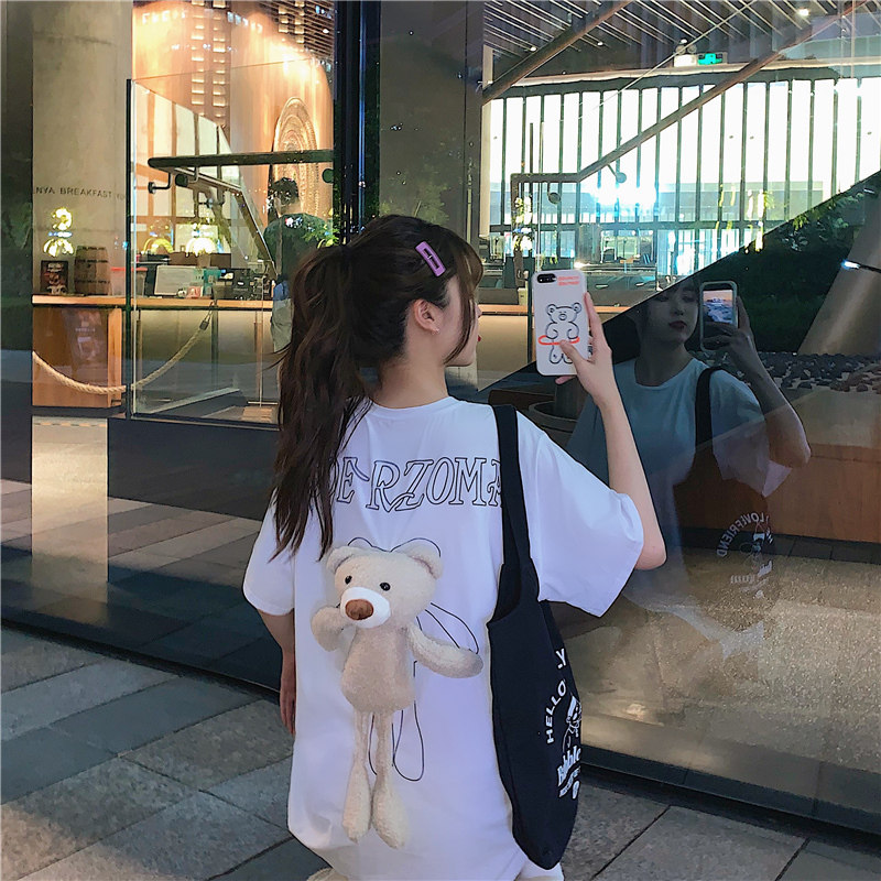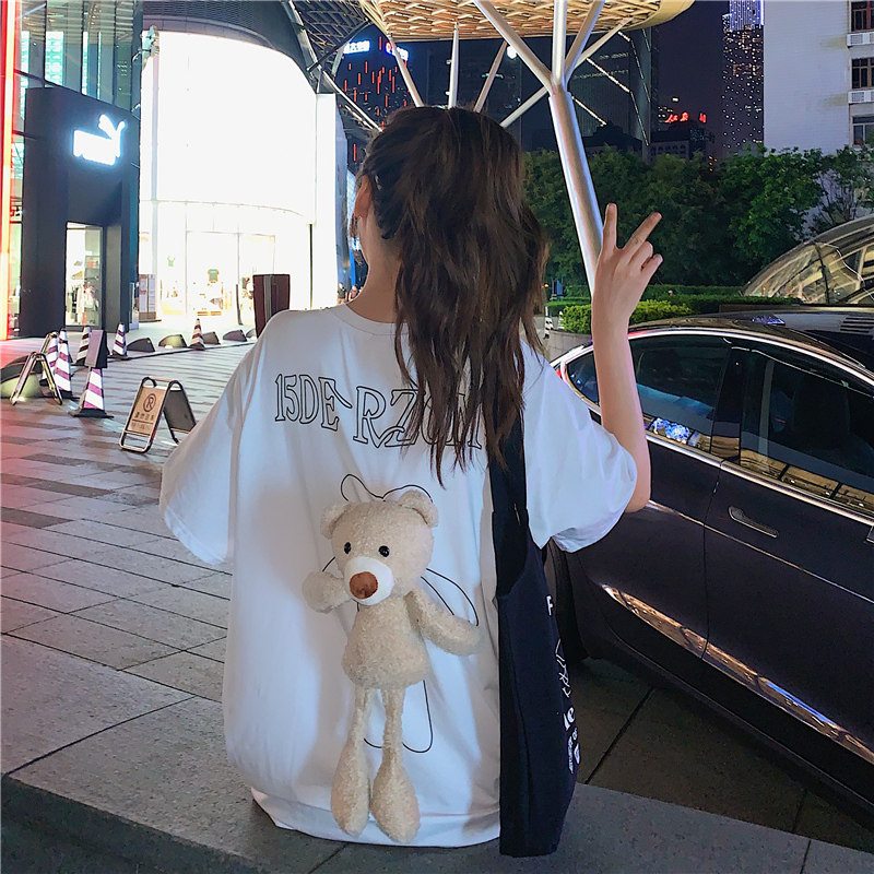 Брендовая дизайнерская футболка, популярно в интернете, с медвежатами, в корейском стиле, тренд сезона, 2021 года