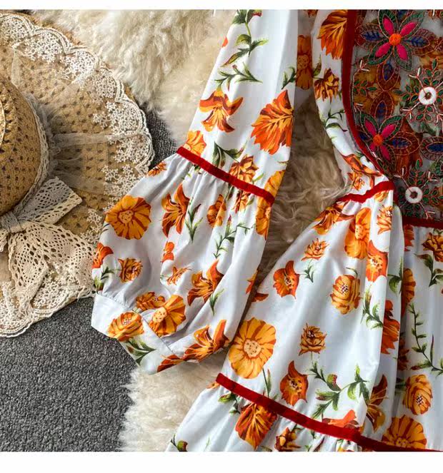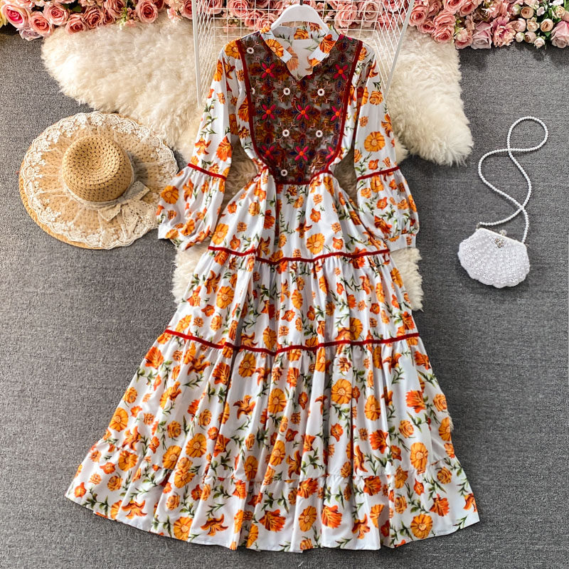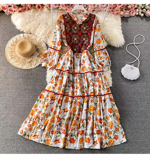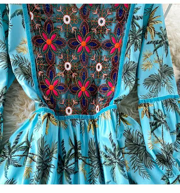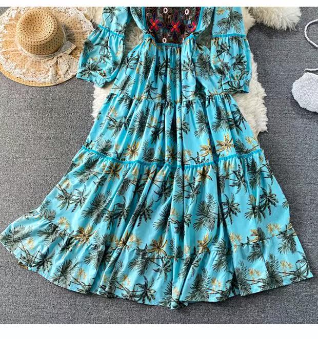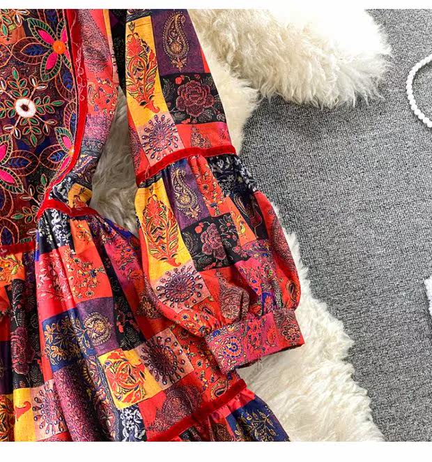 Этническая длинная юбка, платье, рукава фонарики, длина макси, стиль бохо, этнический стиль, с вышивкой, А-силуэт