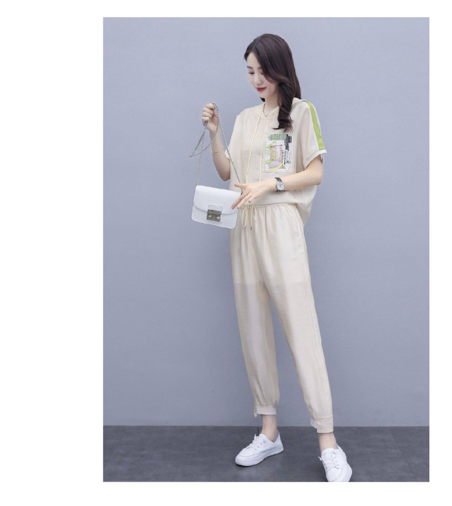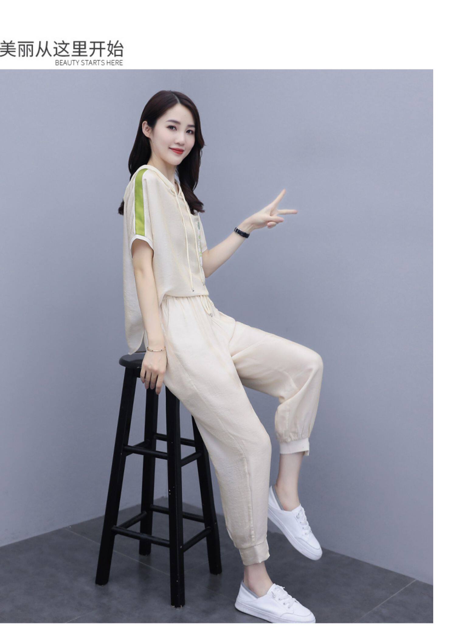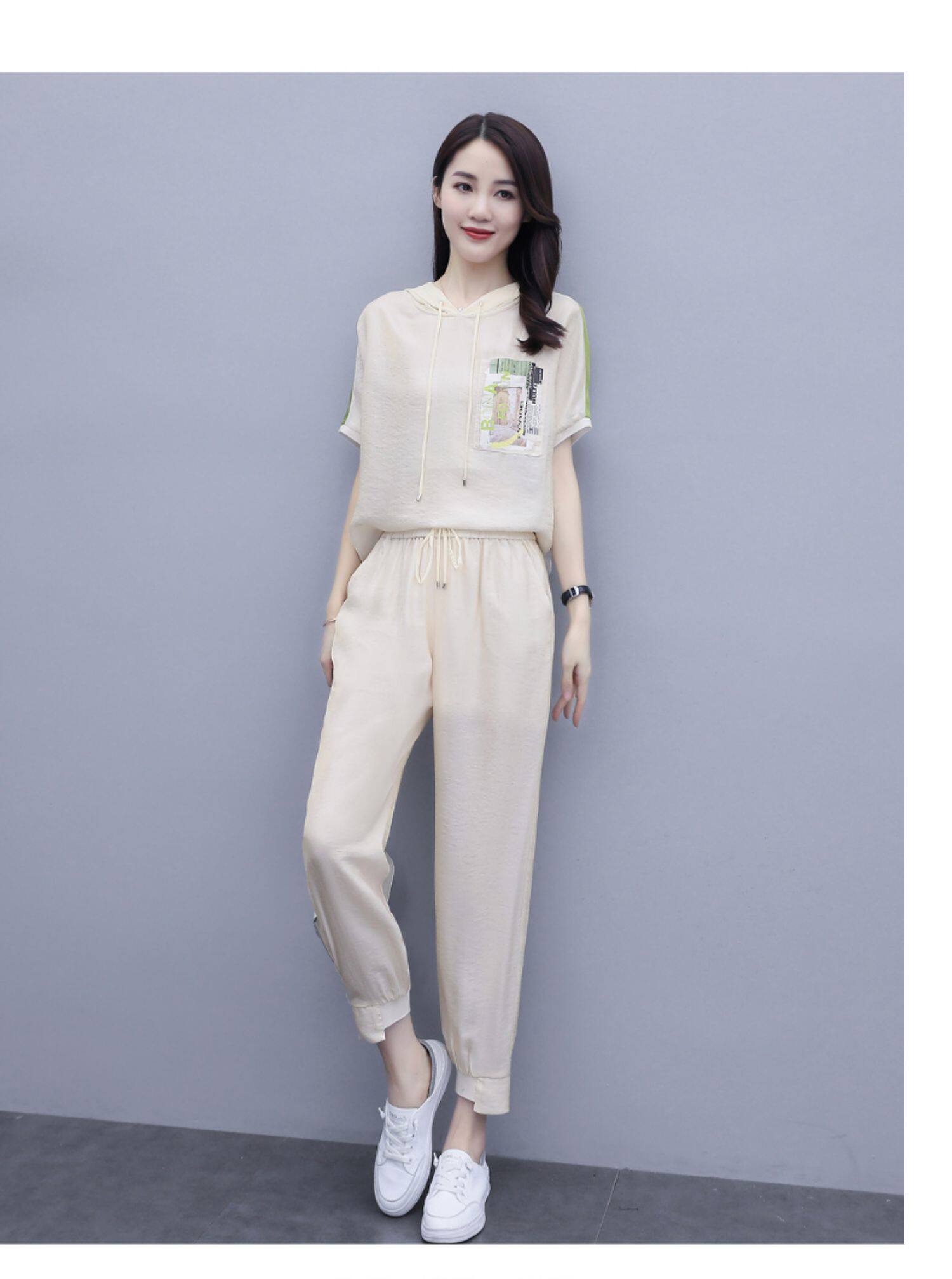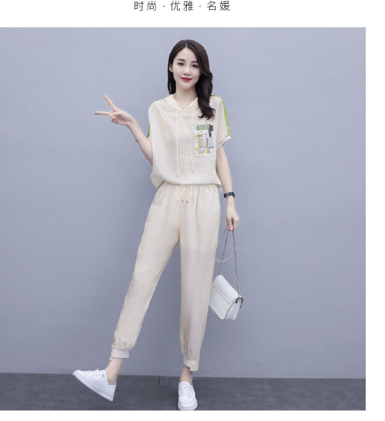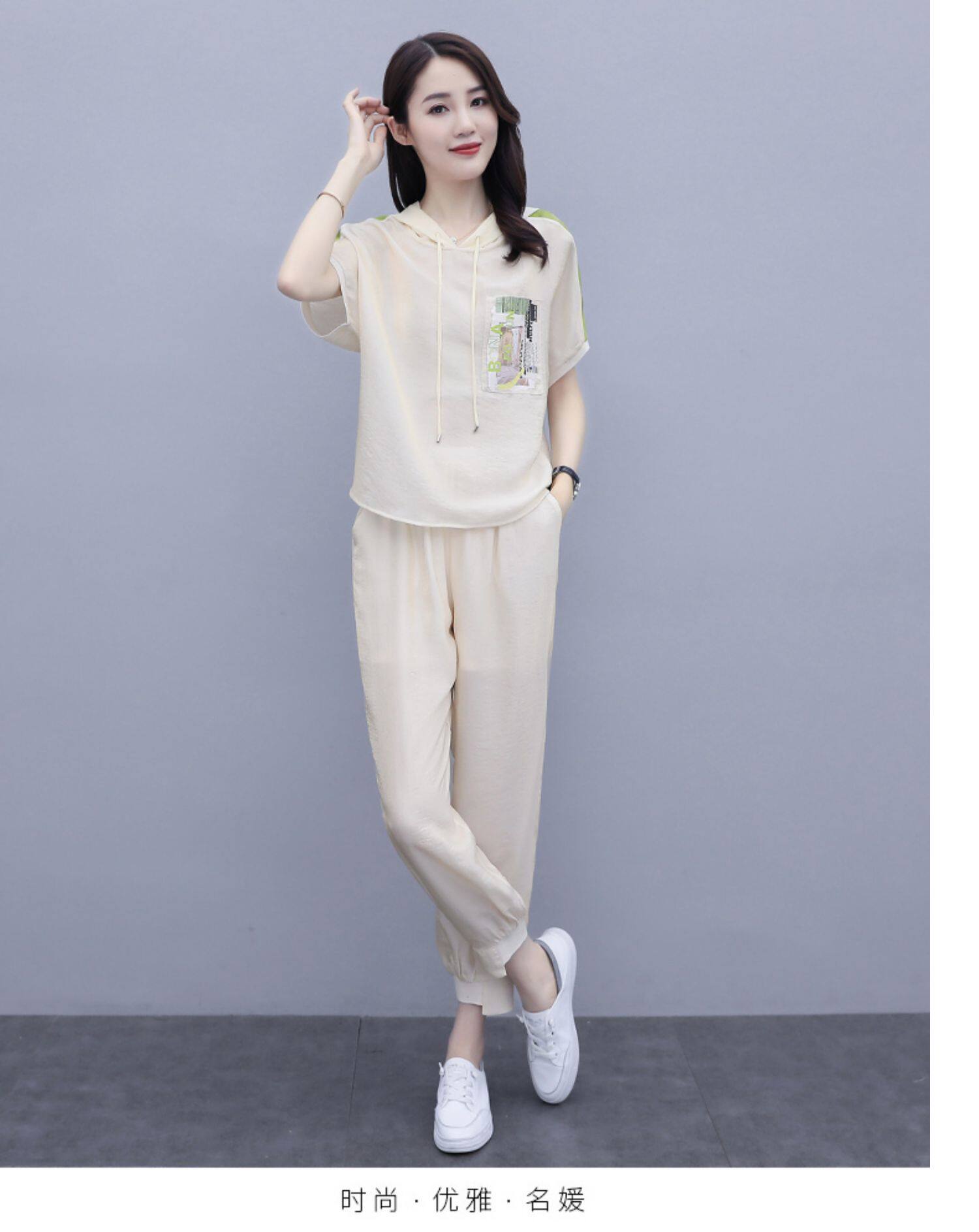 Шифоновые штаны для отдыха, летний комплект, футболка с коротким рукавом, в западном стиле