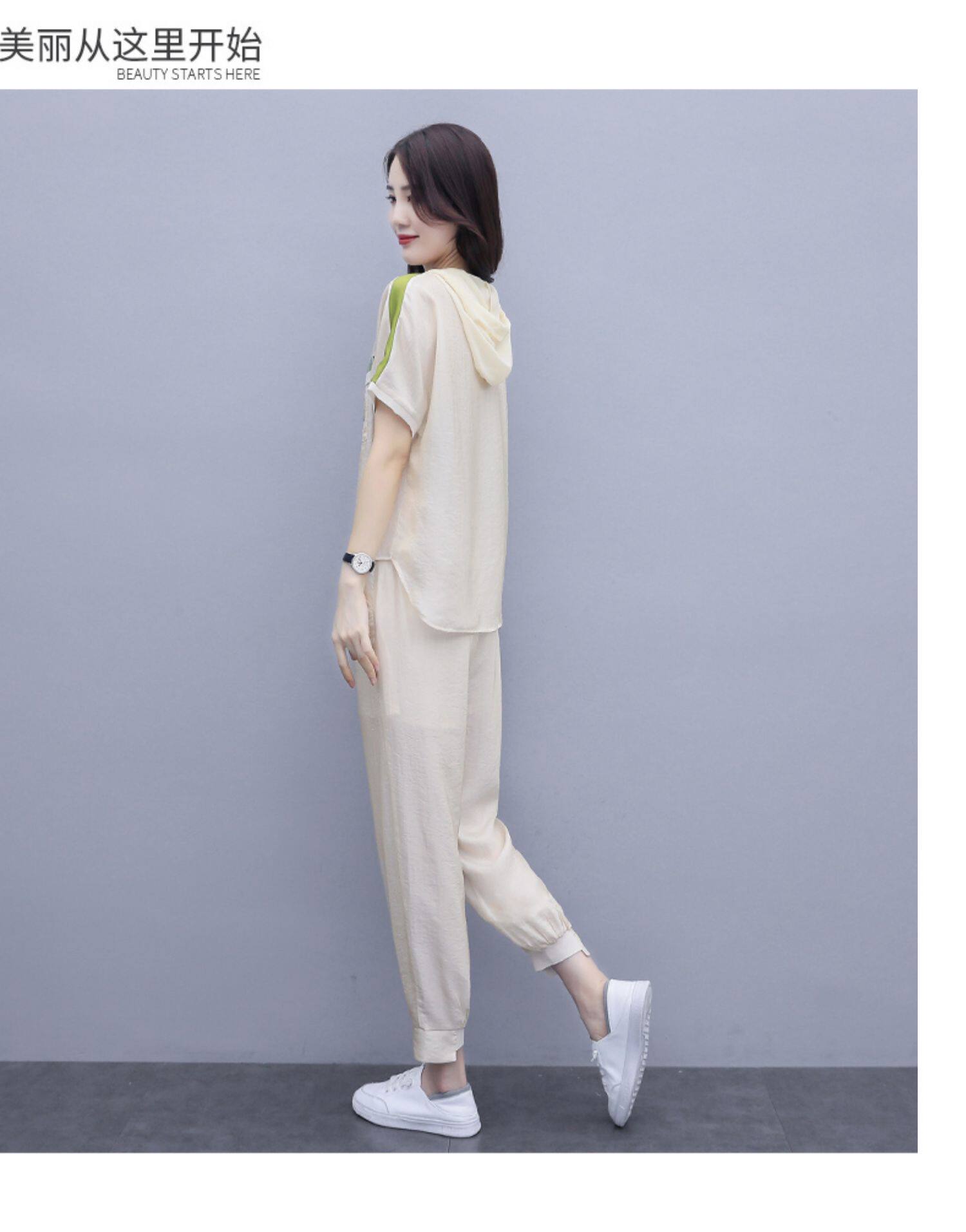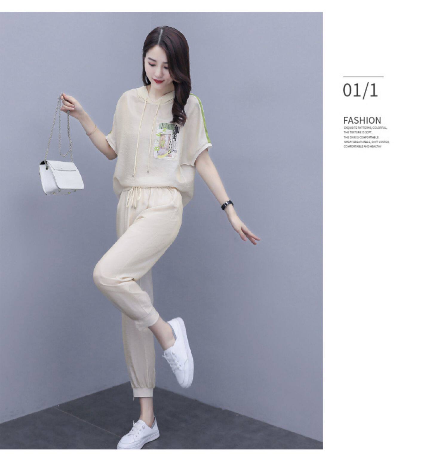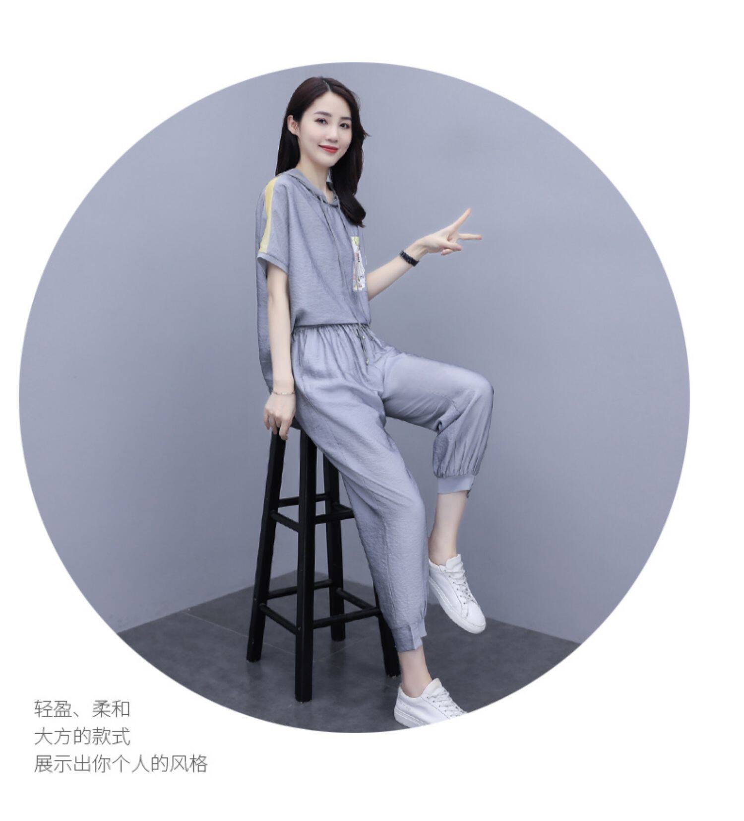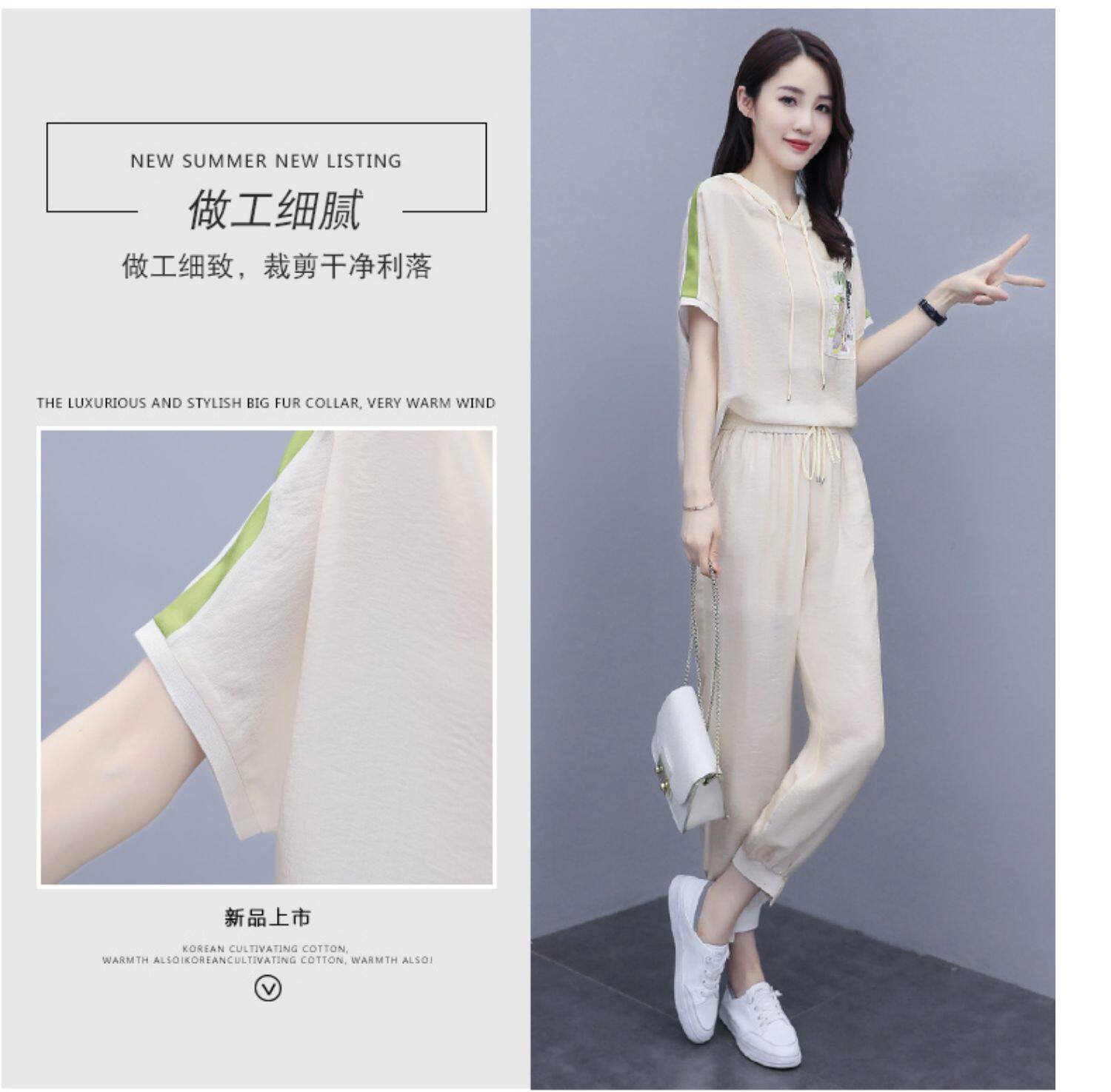 Шифоновые штаны для отдыха, летний комплект, футболка с коротким рукавом, в западном стиле