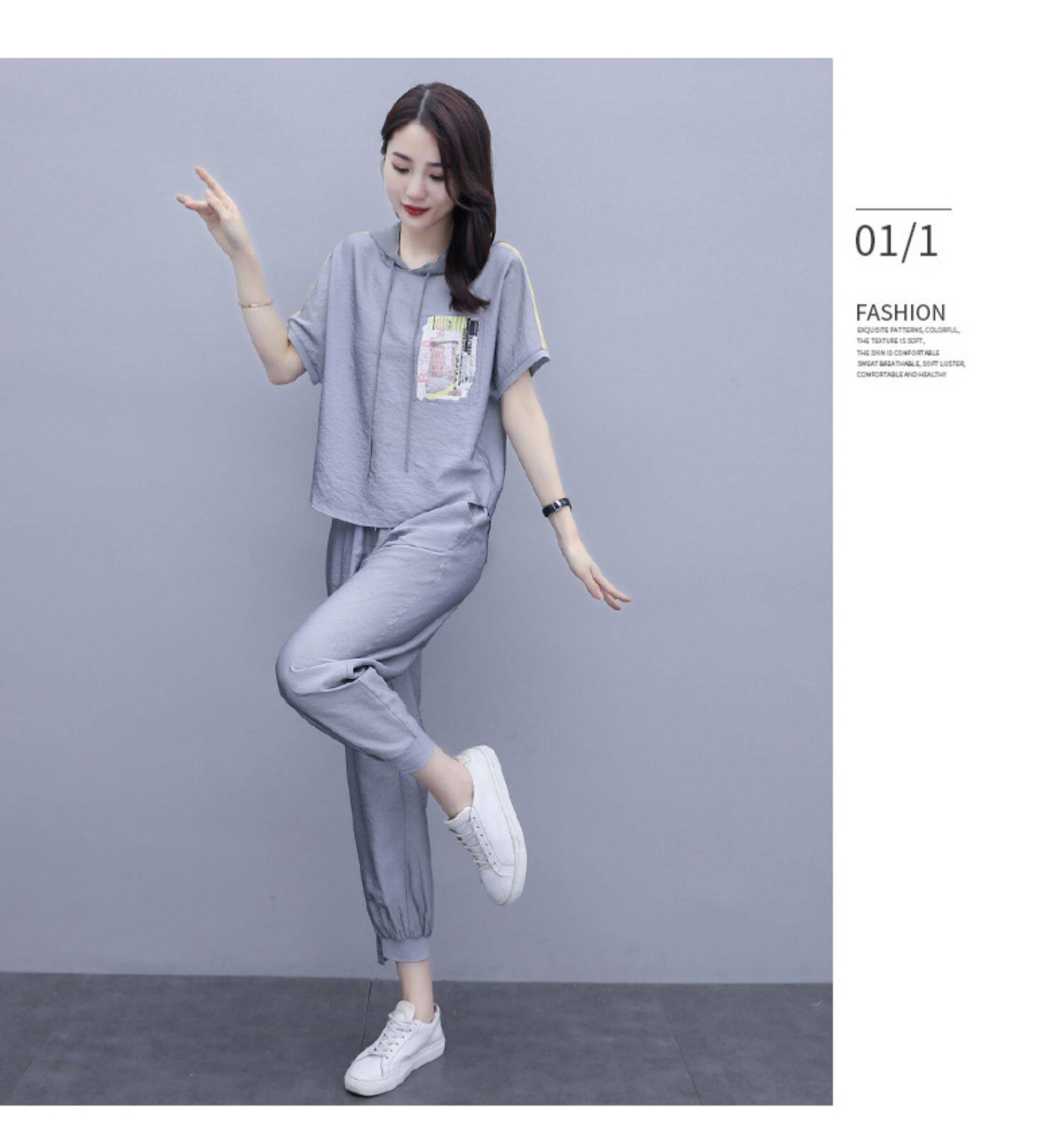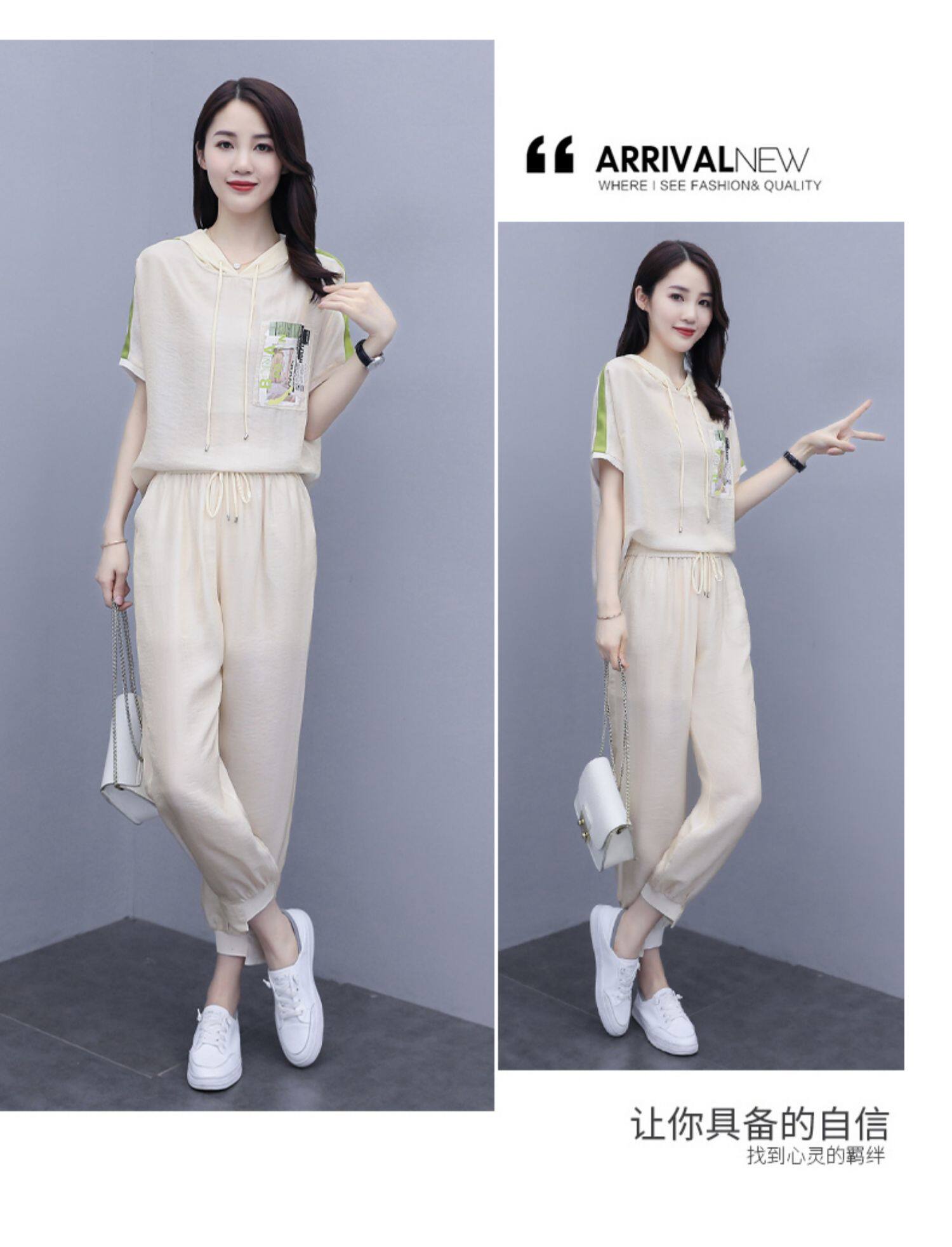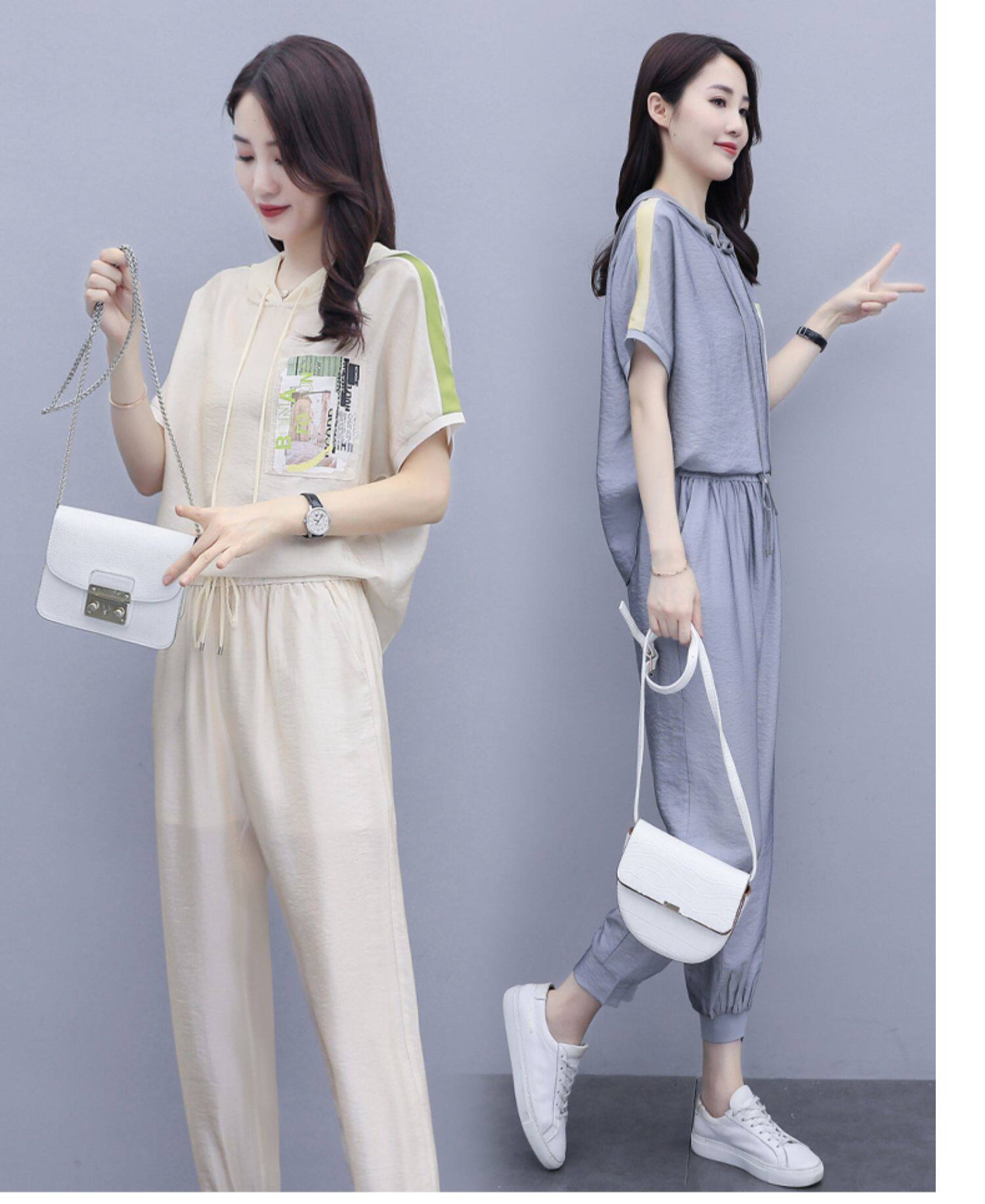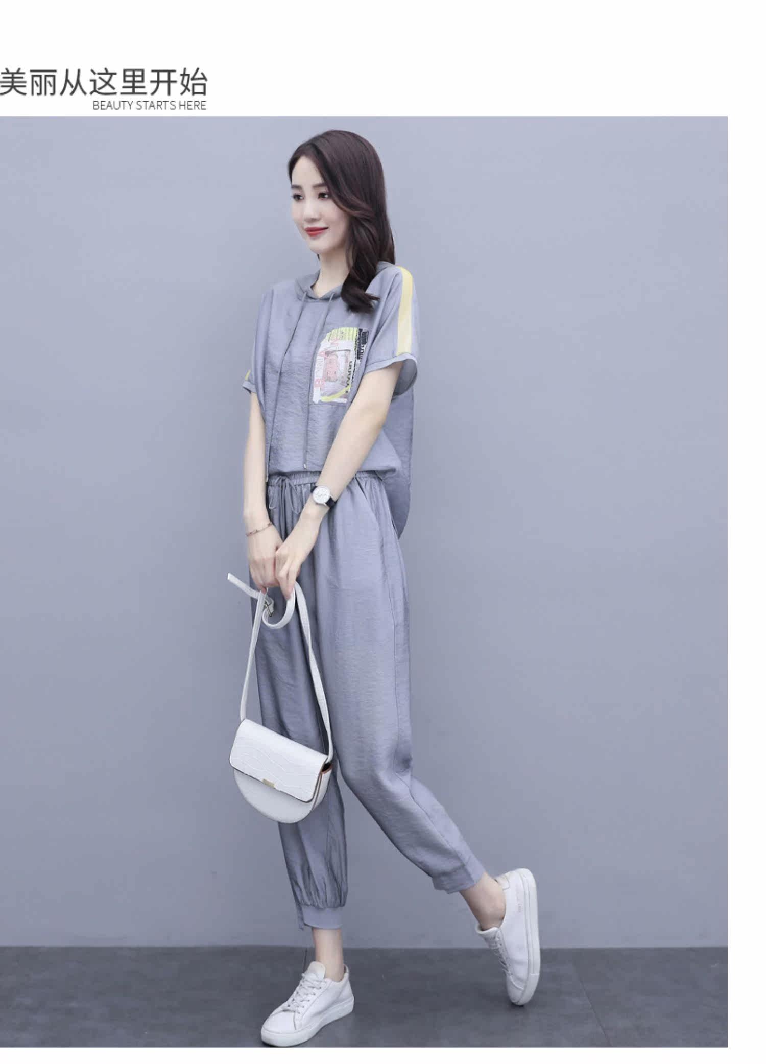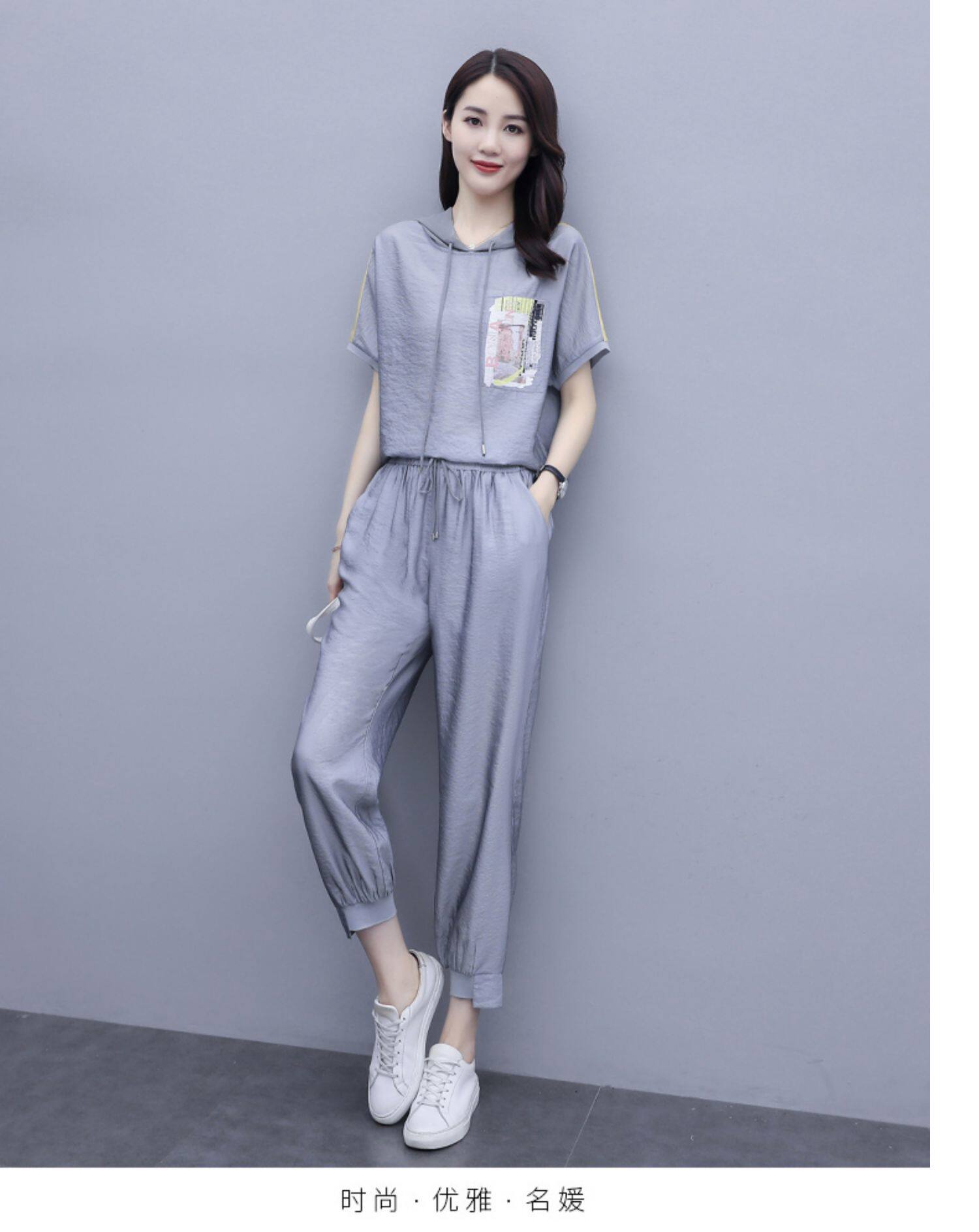 Шифоновые штаны для отдыха, летний комплект, футболка с коротким рукавом, в западном стиле
