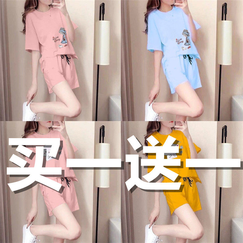 Комплект, шорты, штаны, весенний хлопковый тонкий спортивный костюм, короткий рукав, 2021 года, оверсайз