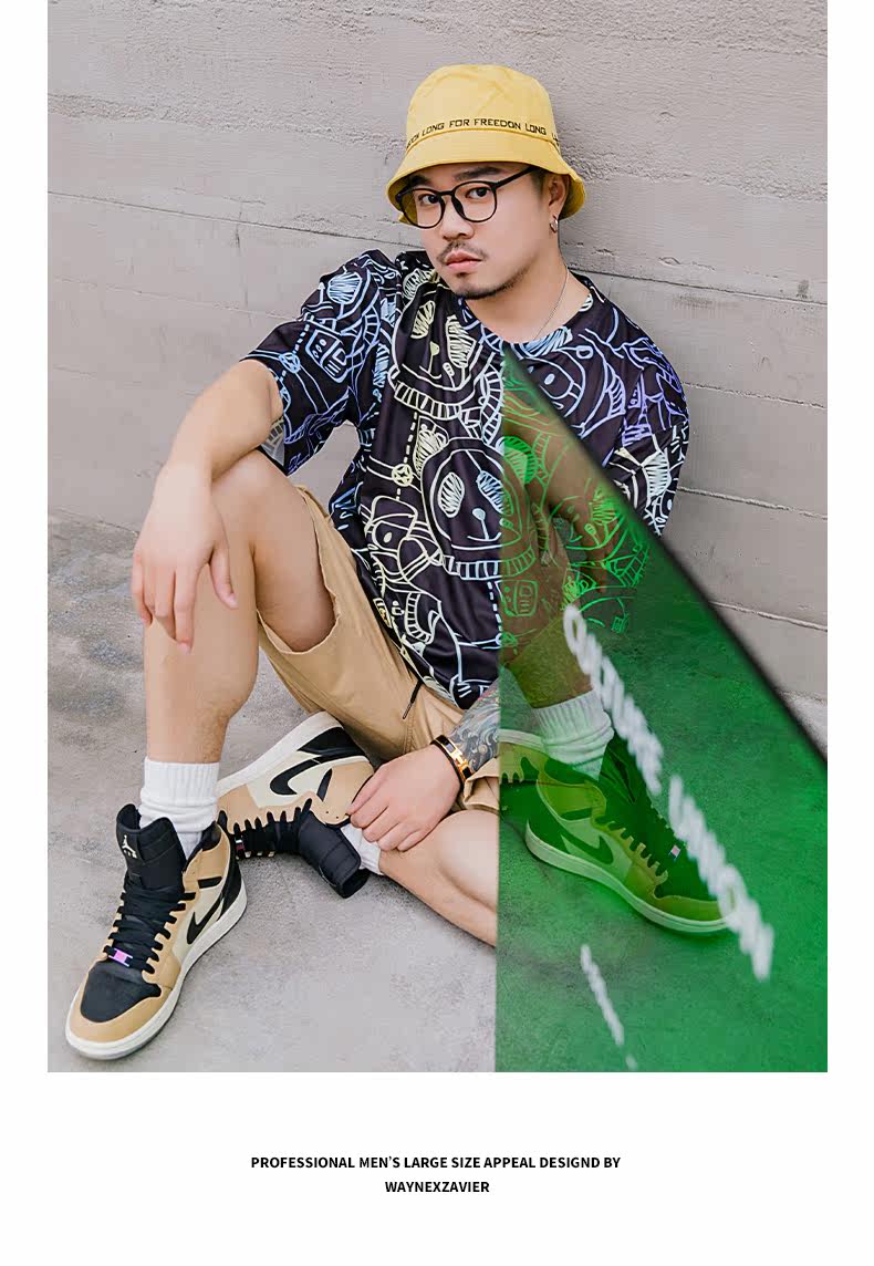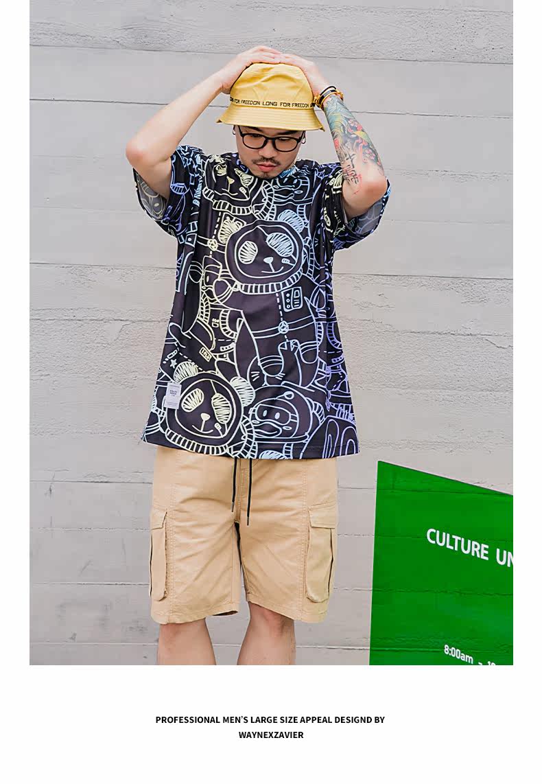 Уэйневиль плюс удобрения увеличивает мультфильм Большой размер свободный круг, печатное химическое волокно T -мала Men 7027