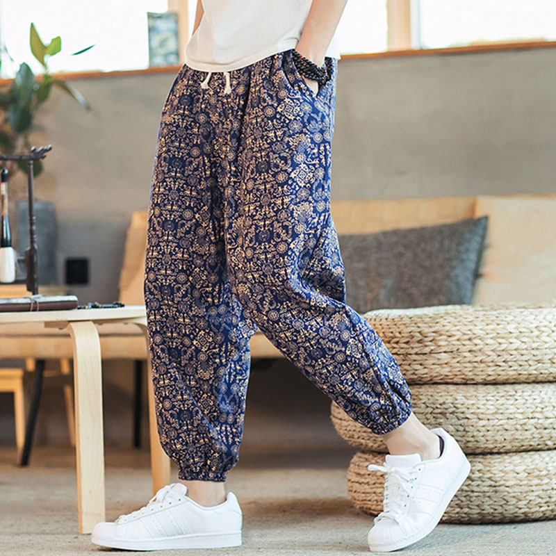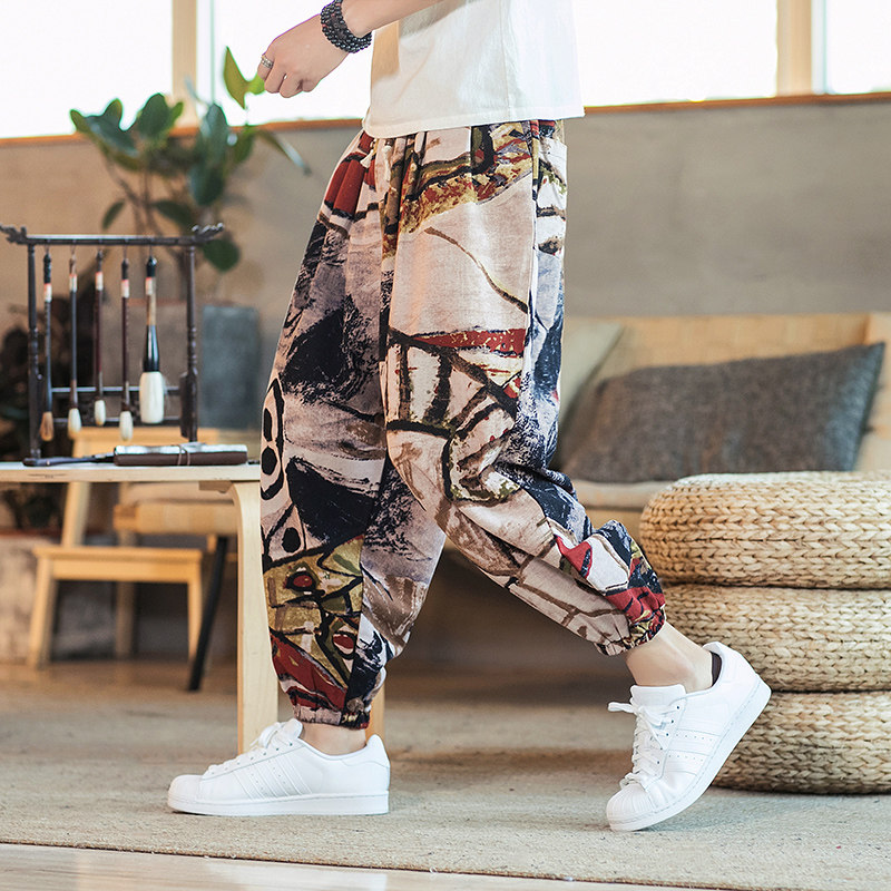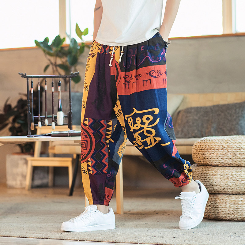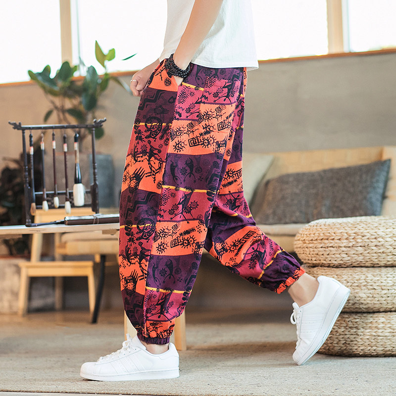 Летние китайские штаны, подсветка пола, фонарь, китайский стиль, оверсайз, свободный крой