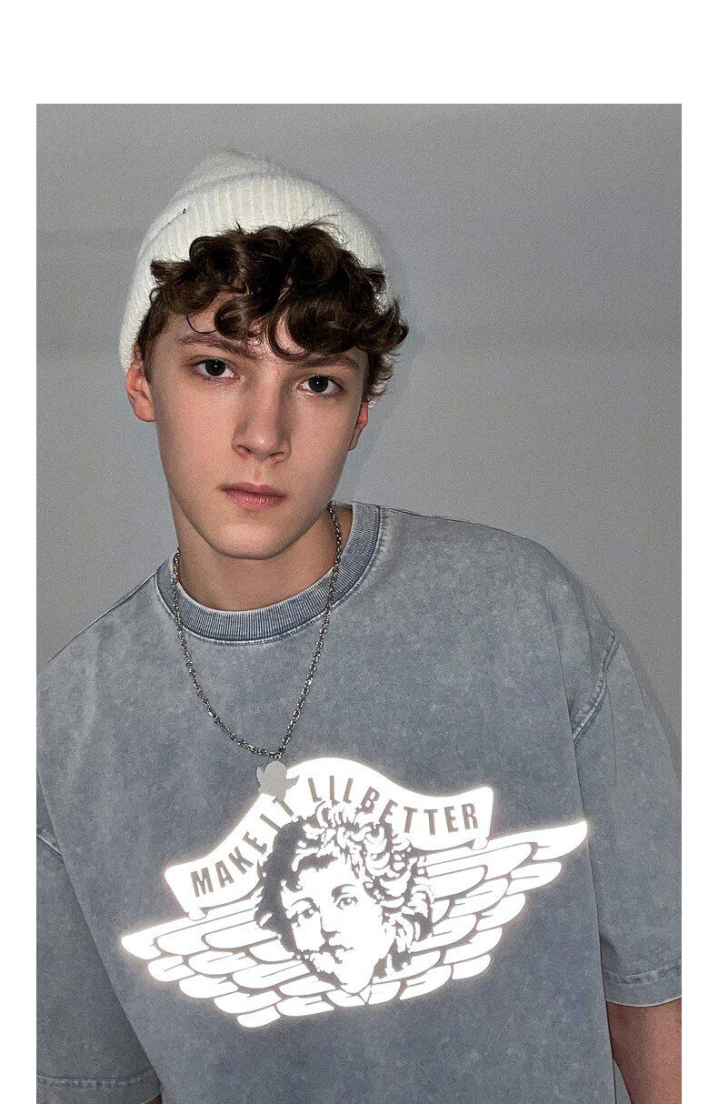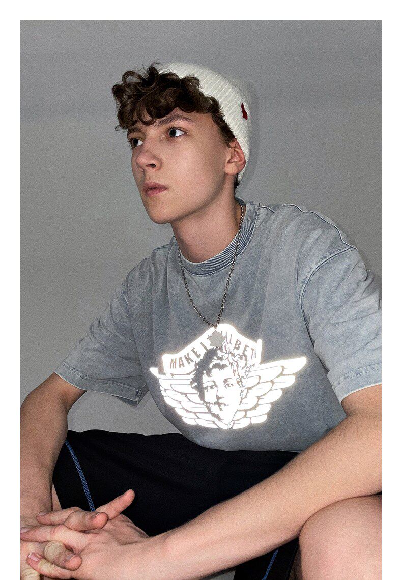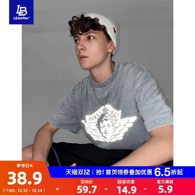 Lilbetter Ретро трендовая светоотражающая хлопковая летняя футболка, короткий рукав, в американском стиле