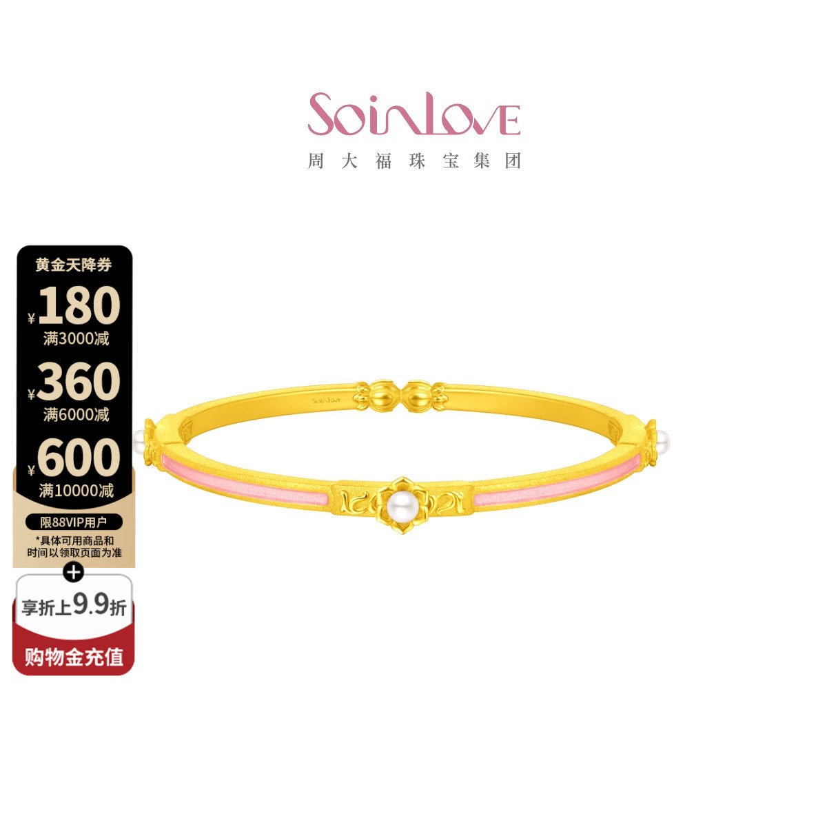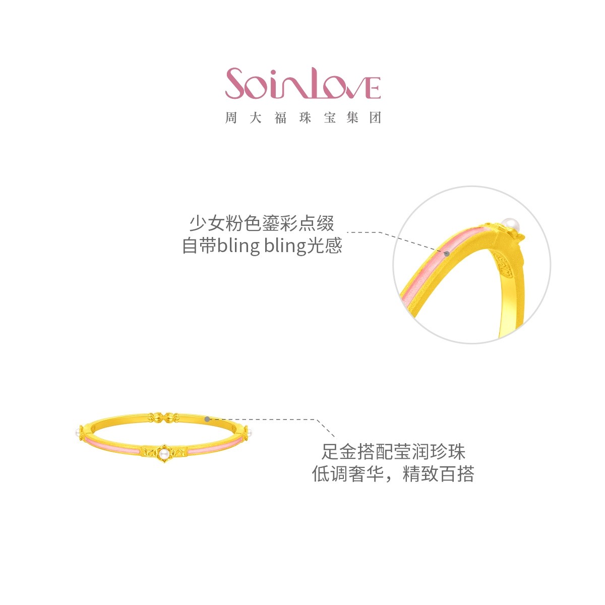 周大福 SOINLOVE "Honey Pink Pink Ten Miles Red Makeup" Золотой жемчужный браслет VR1531 подарок