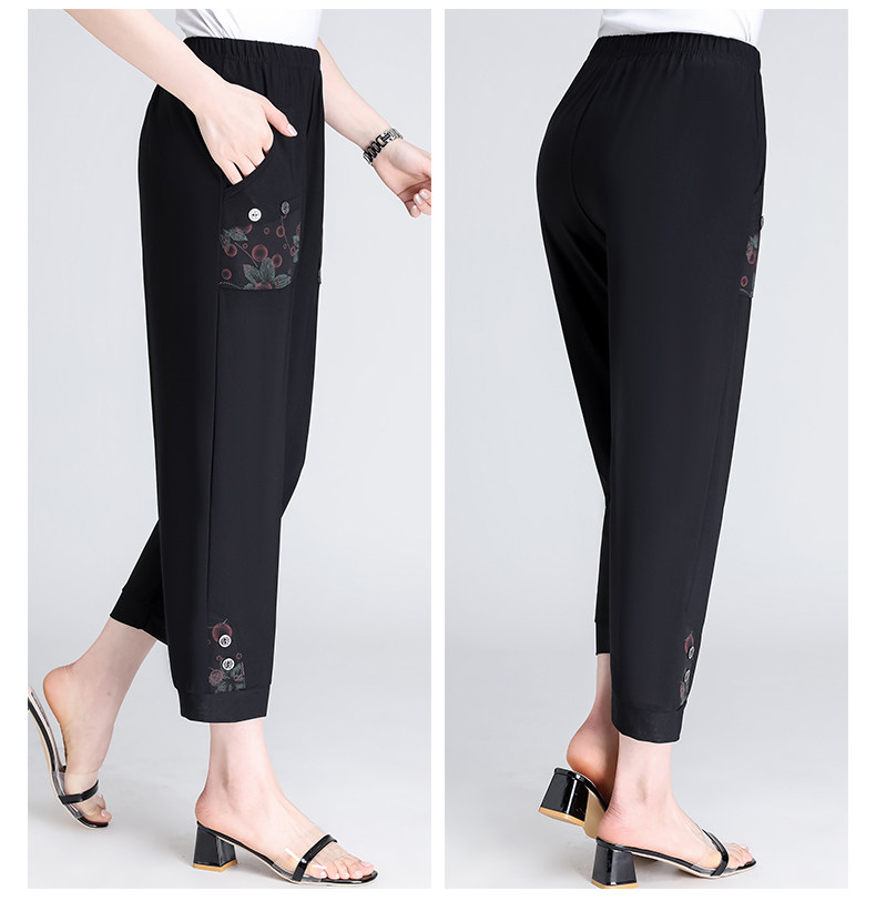 Летние тонкие шелковые штаны для матери для отдыха, оверсайз, для среднего возраста