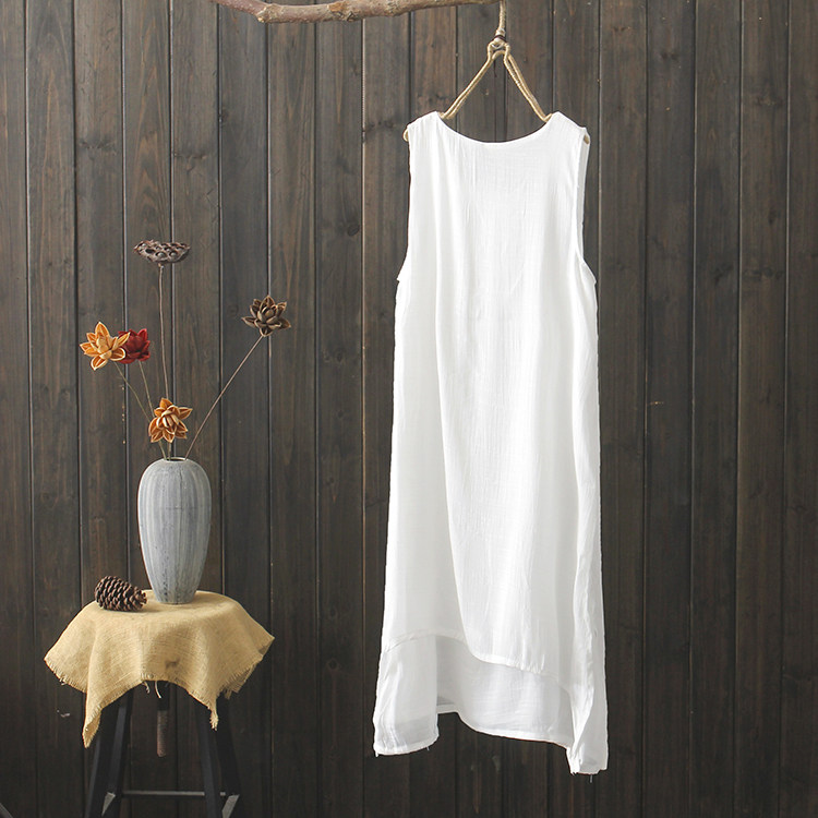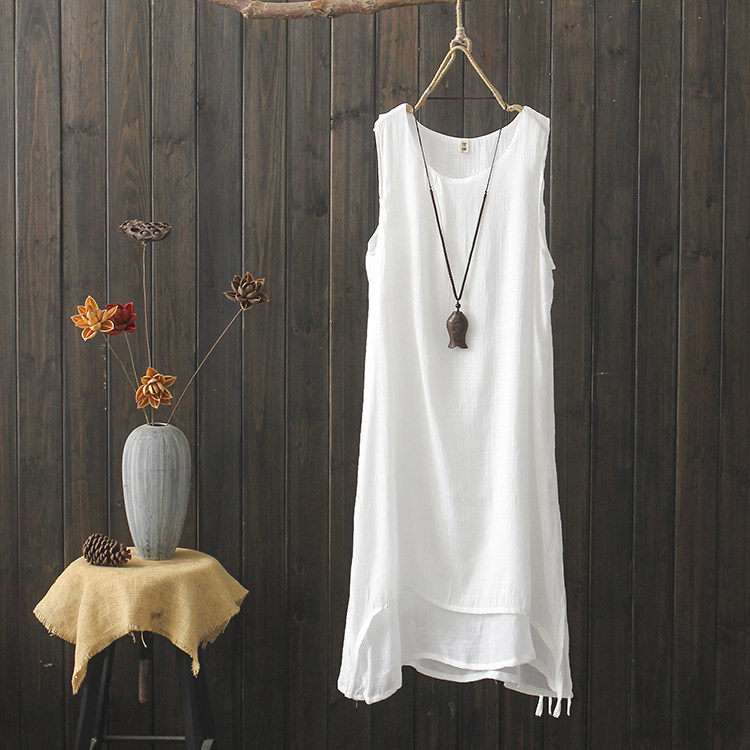 Длинное платье без рукавов, жилет, длинная юбка, коллекция 2021, китайский стиль, из хлопка и льна