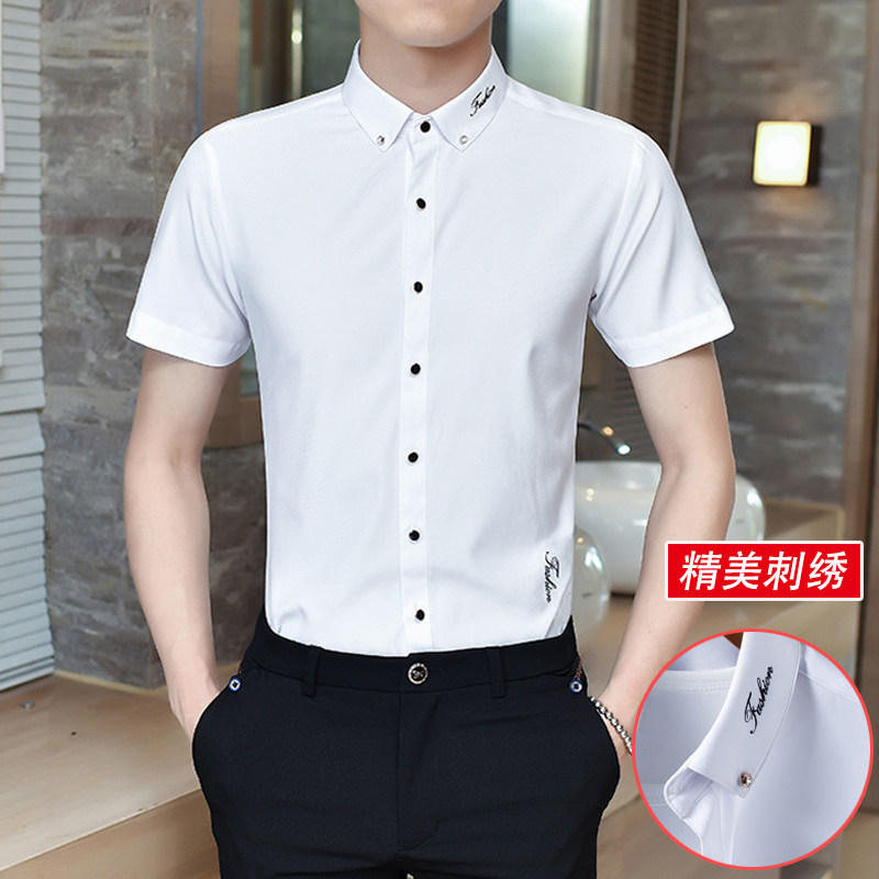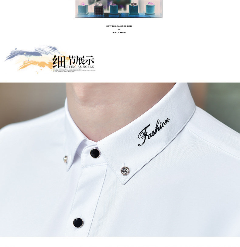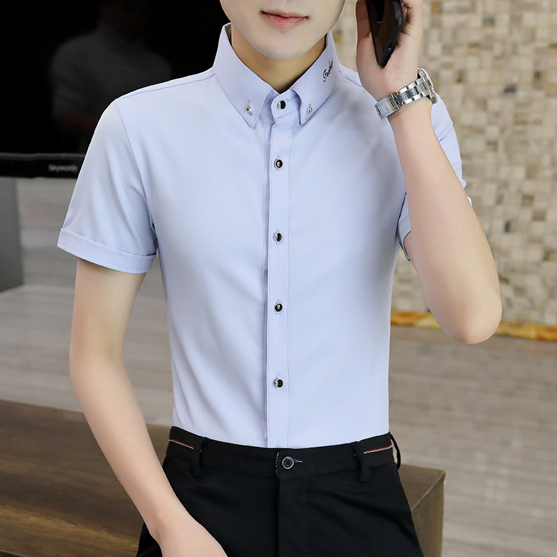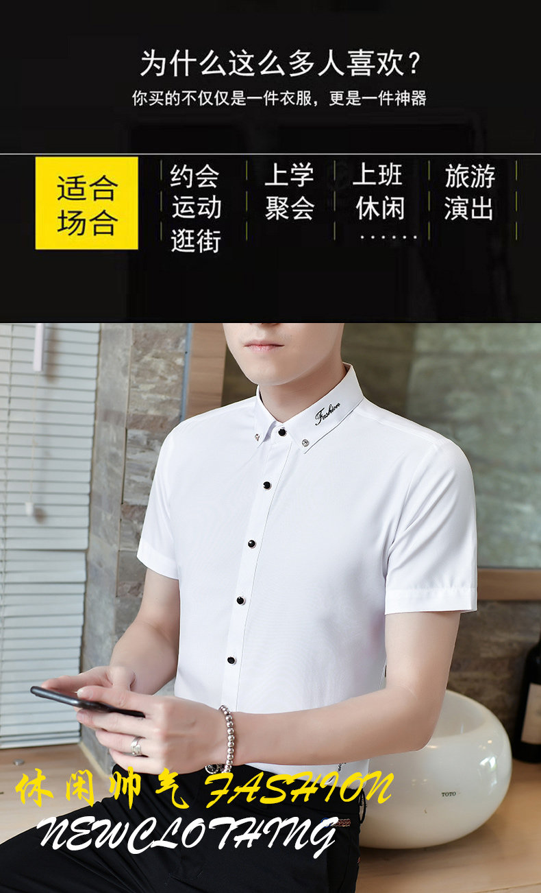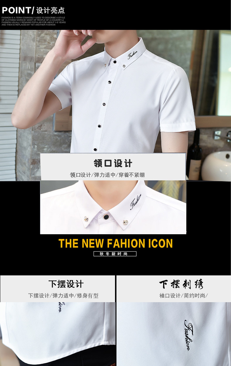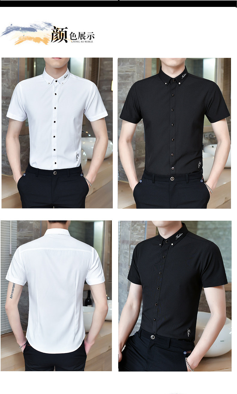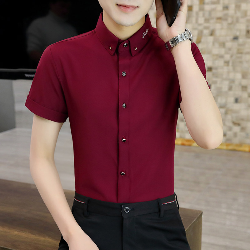 Летняя эластичная мужская черная рубашка, в корейском стиле, с вышивкой