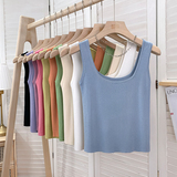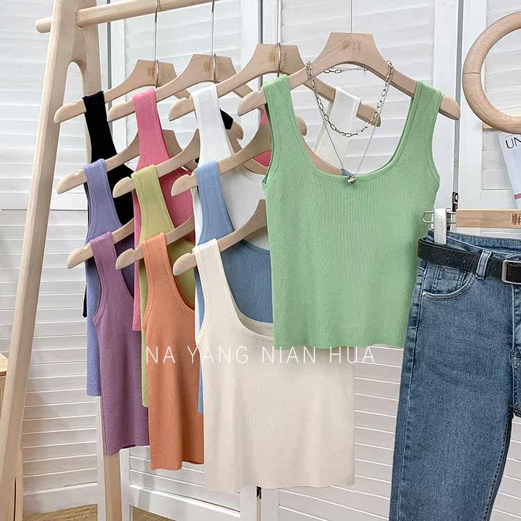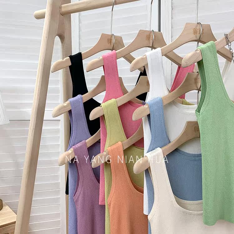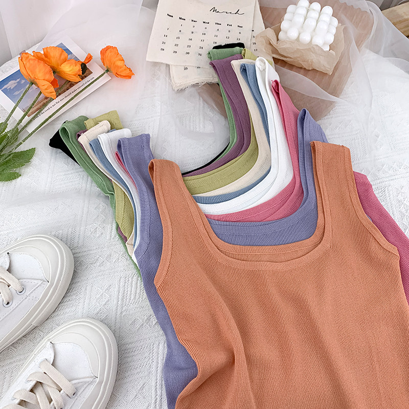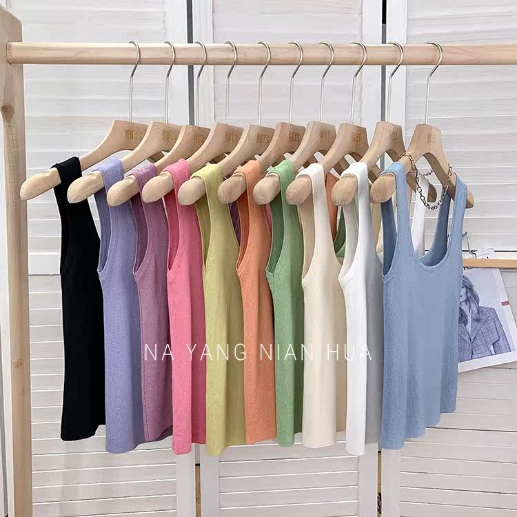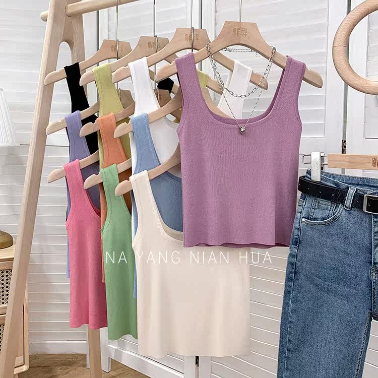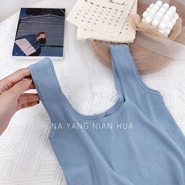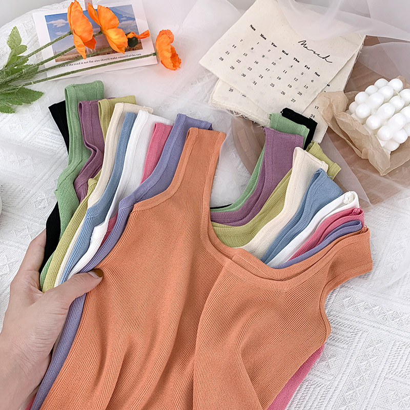 Трикотажный жилет, майка топ без рукавов, базовый летний сексуальный костюм, в корейском стиле, французский стиль, красивая спина, эффект подтяжки