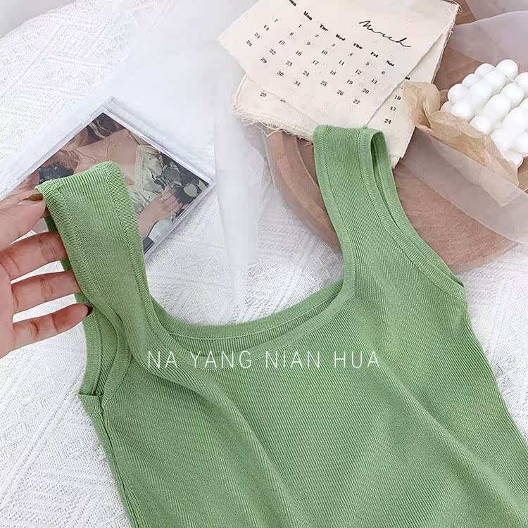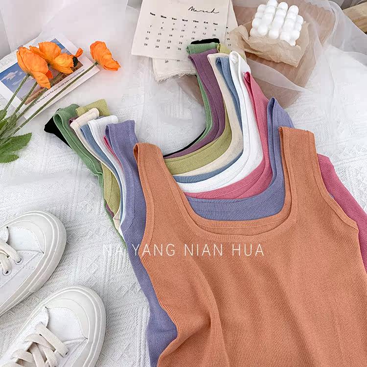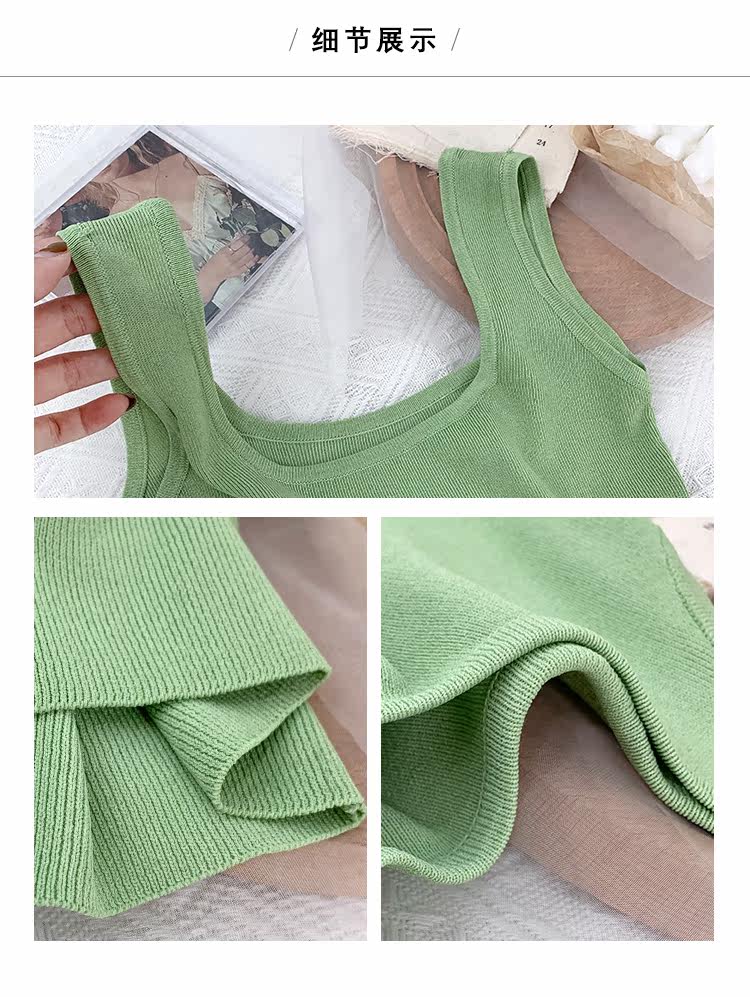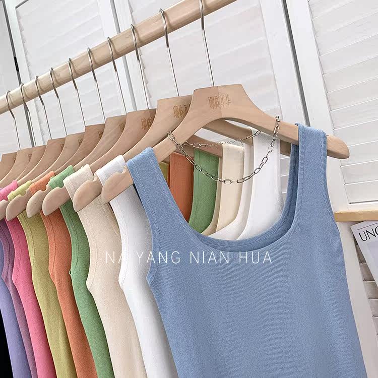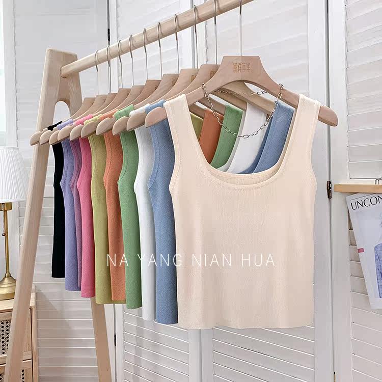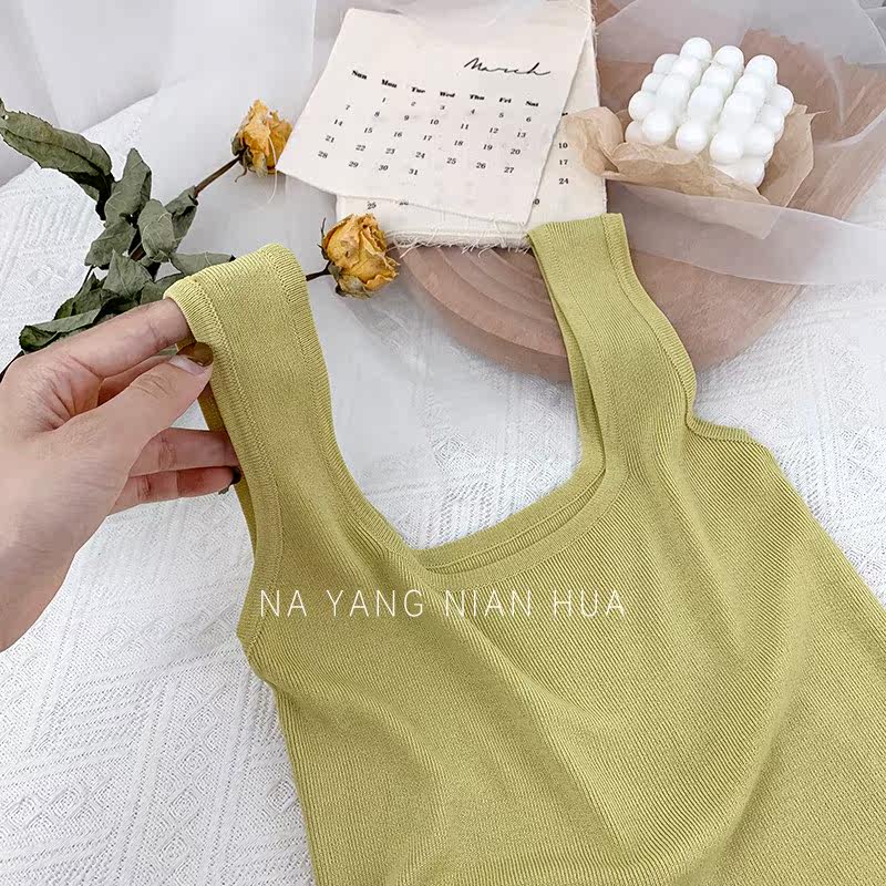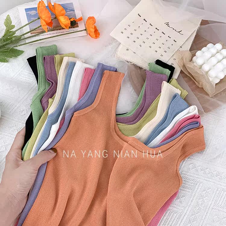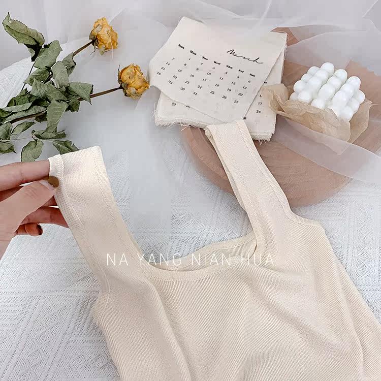 Трикотажный жилет, майка топ без рукавов, базовый летний сексуальный костюм, в корейском стиле, французский стиль, красивая спина, эффект подтяжки