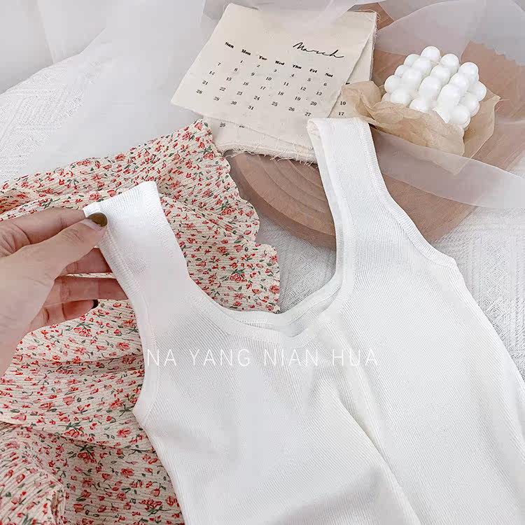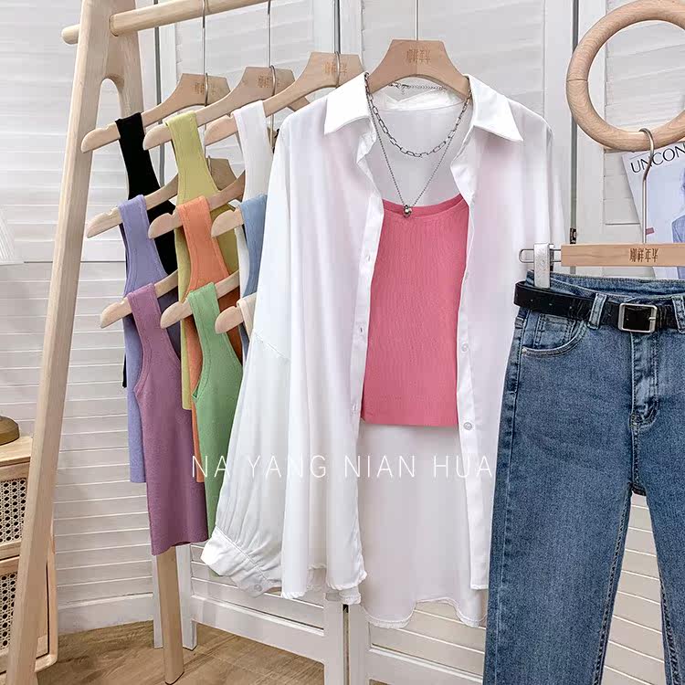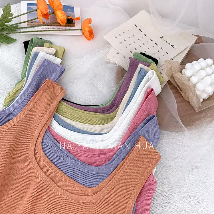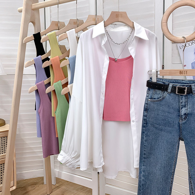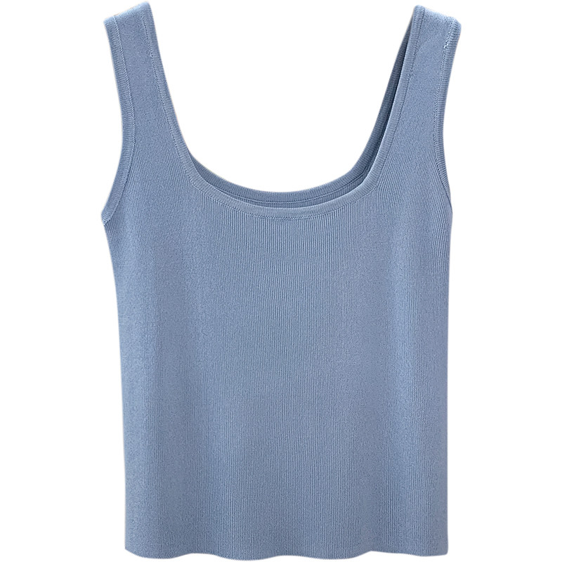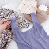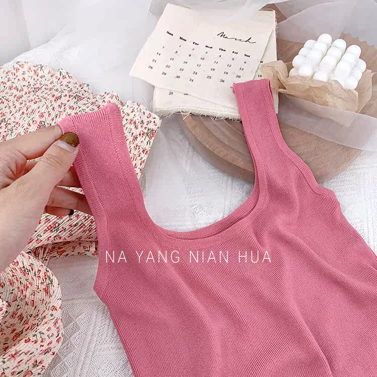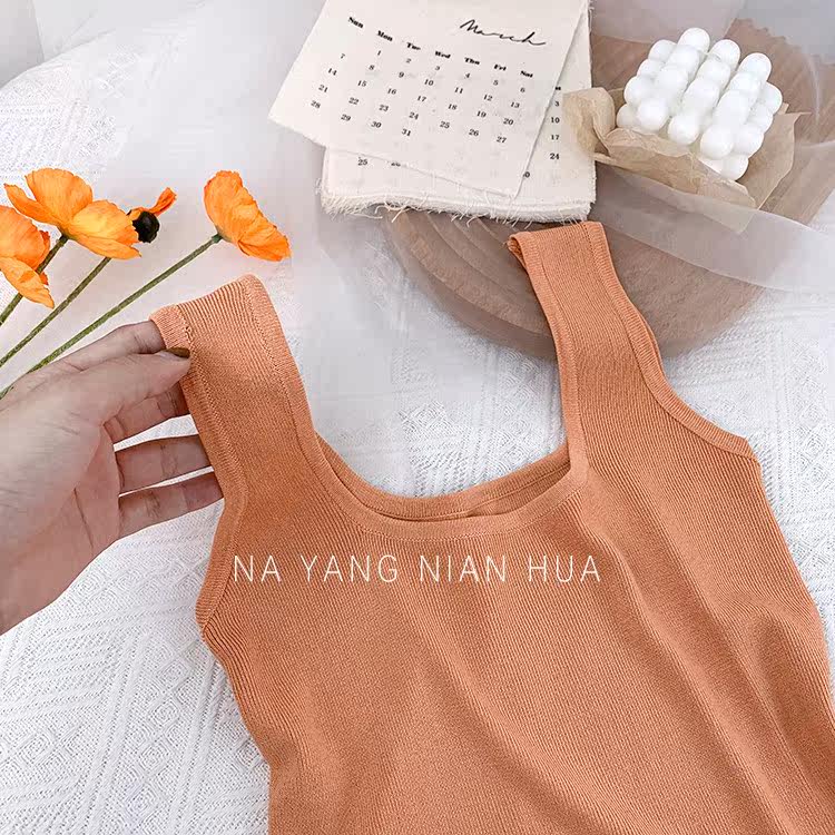 Трикотажный жилет, майка топ без рукавов, базовый летний сексуальный костюм, в корейском стиле, французский стиль, красивая спина, эффект подтяжки