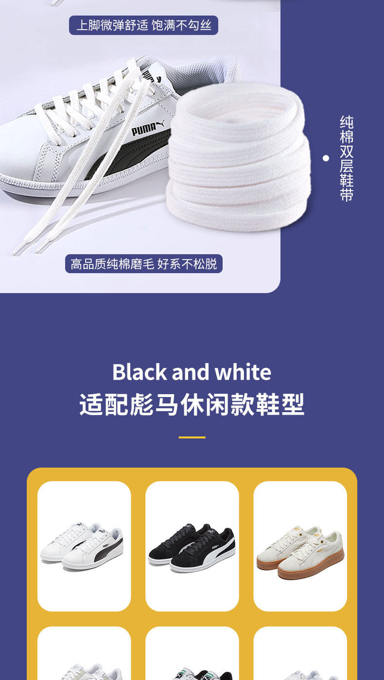 乐往 Puma, оригинальные шнурки подходит для мужчин и женщин, белая лента с бантиком