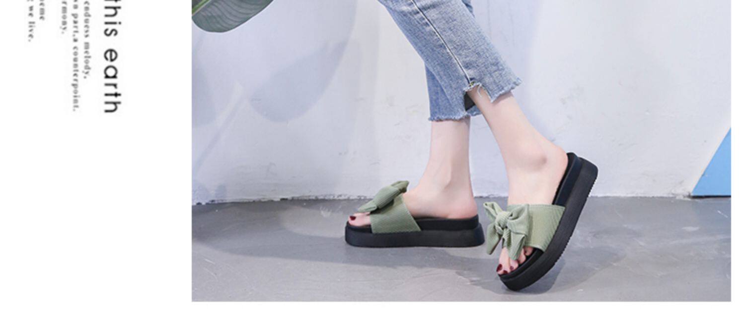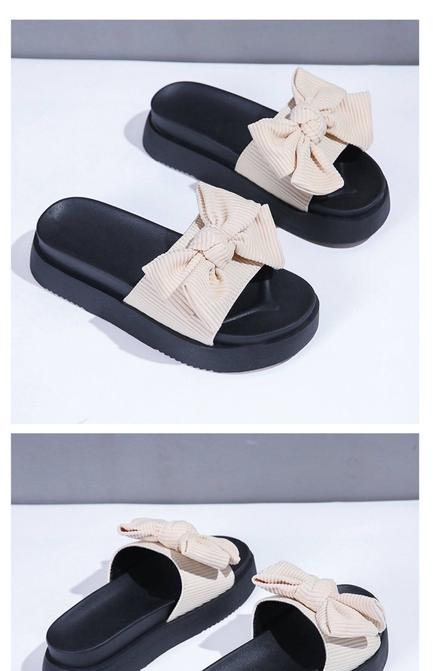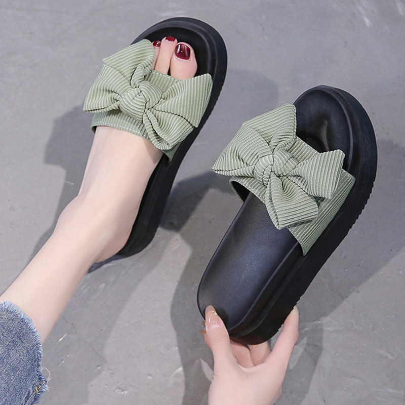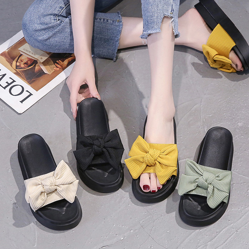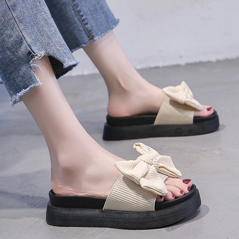 Модные летние слайдеры, универсальные тапочки на платформе с бантиком, 2022, в корейском стиле