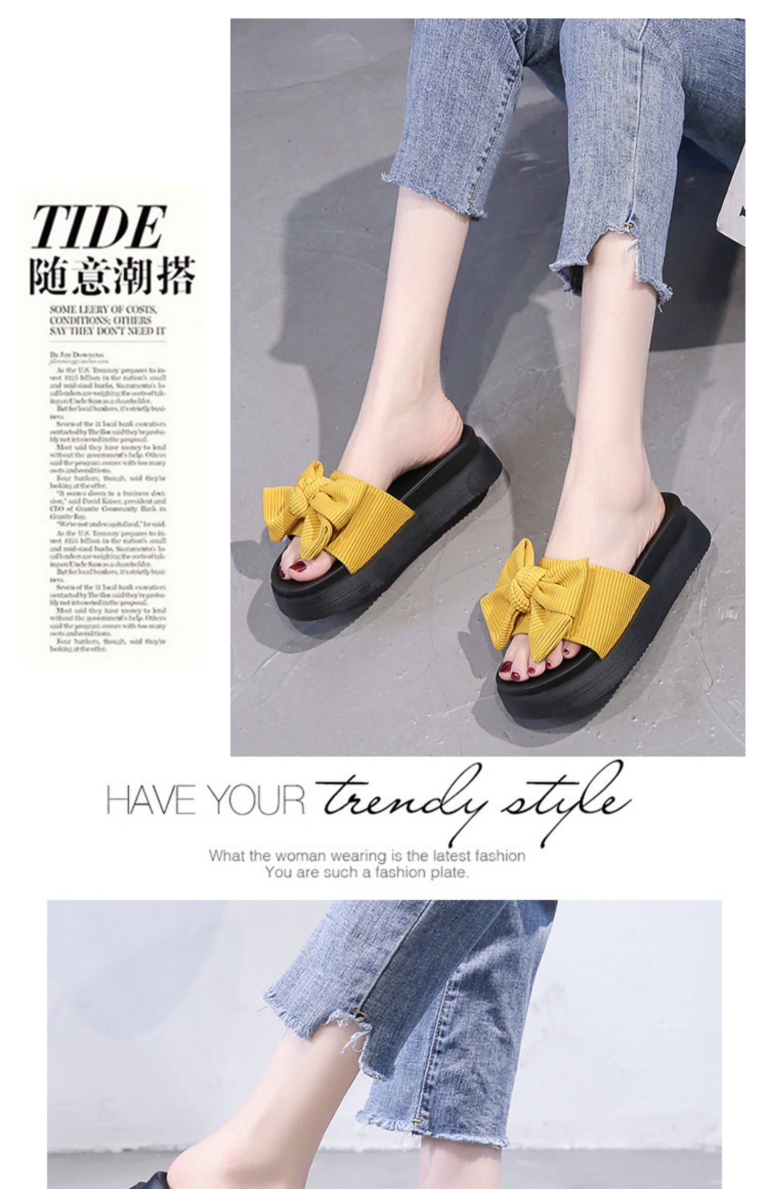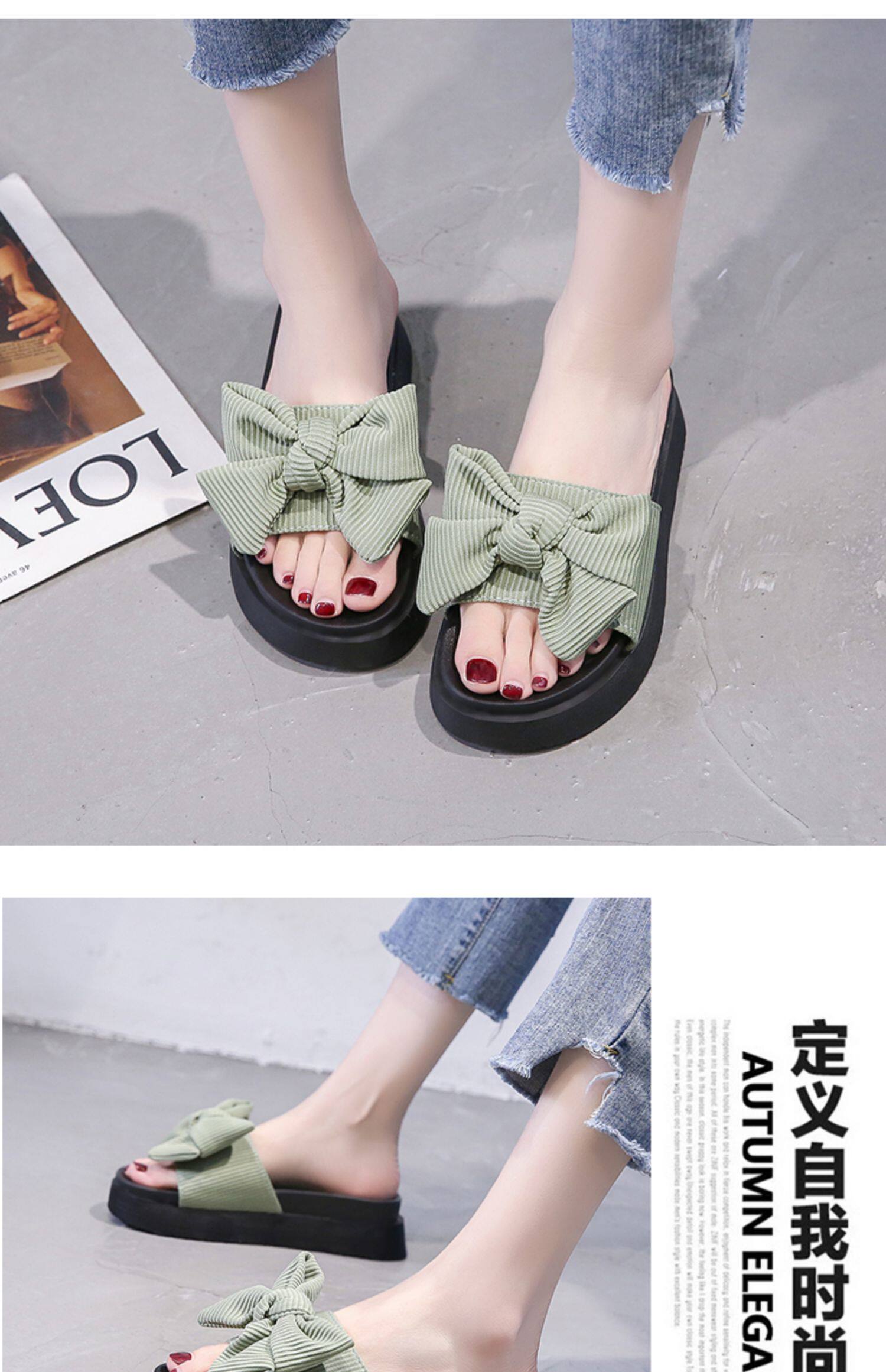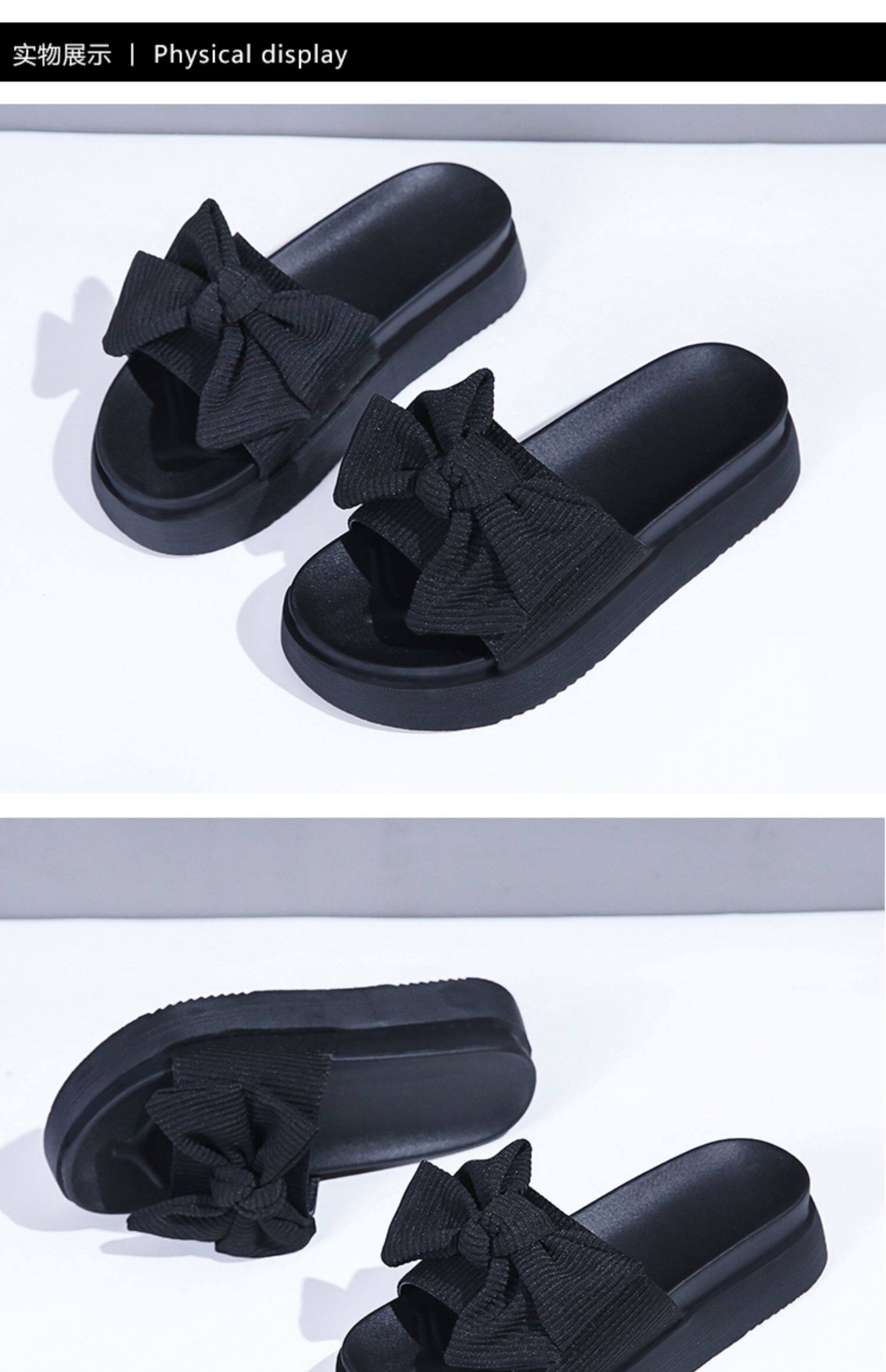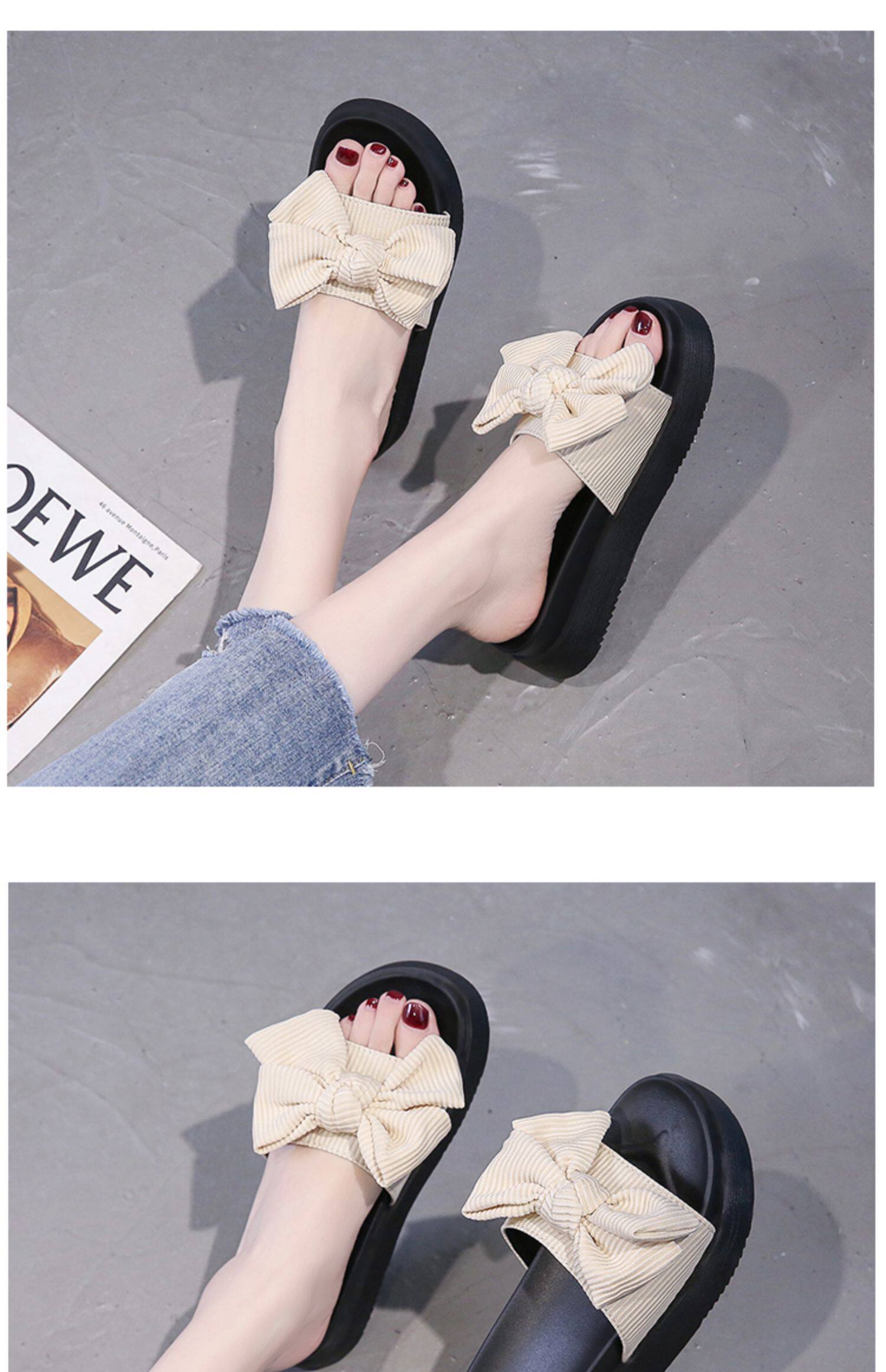 Модные летние слайдеры, универсальные тапочки на платформе с бантиком, 2022, в корейском стиле
