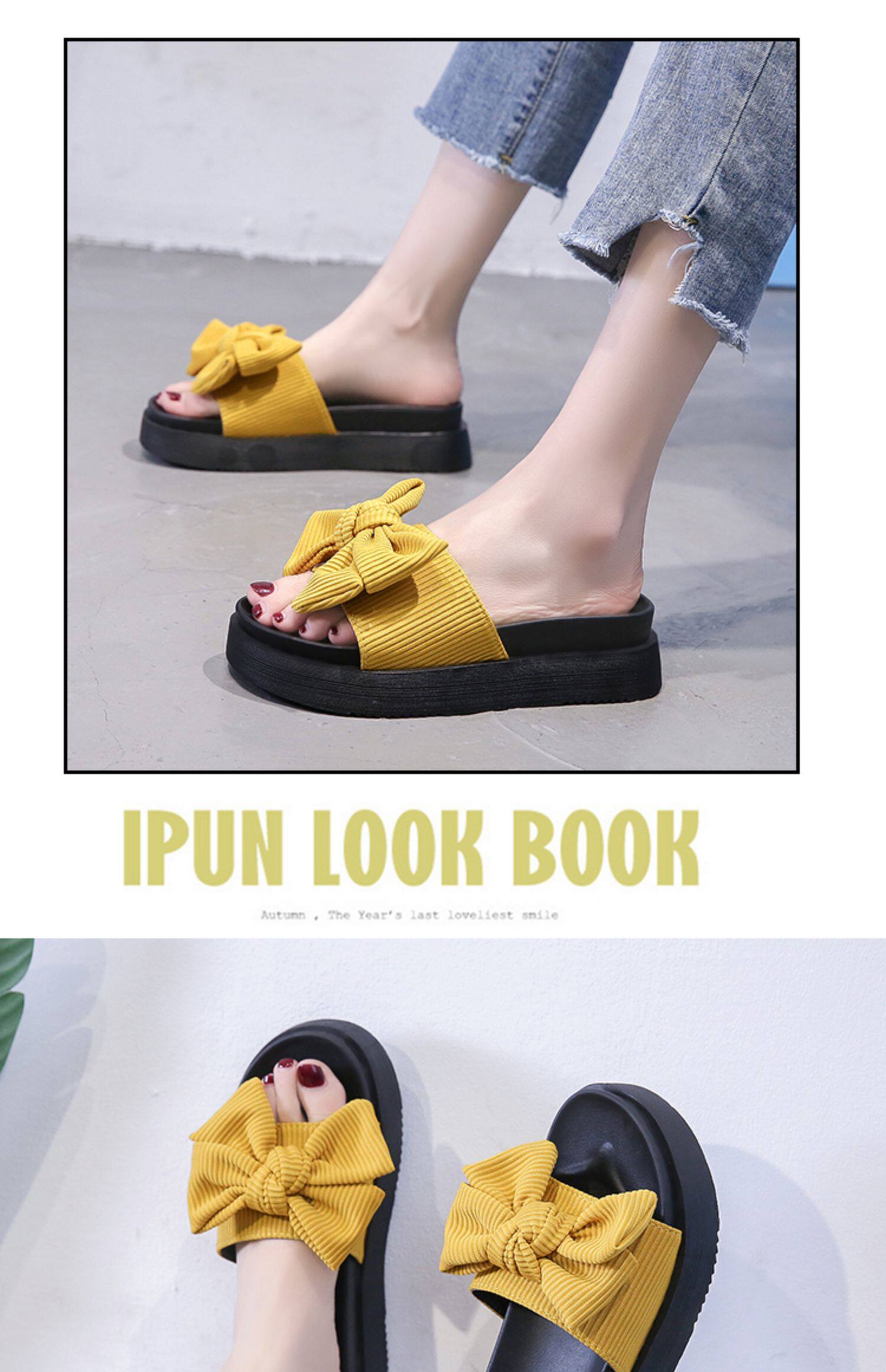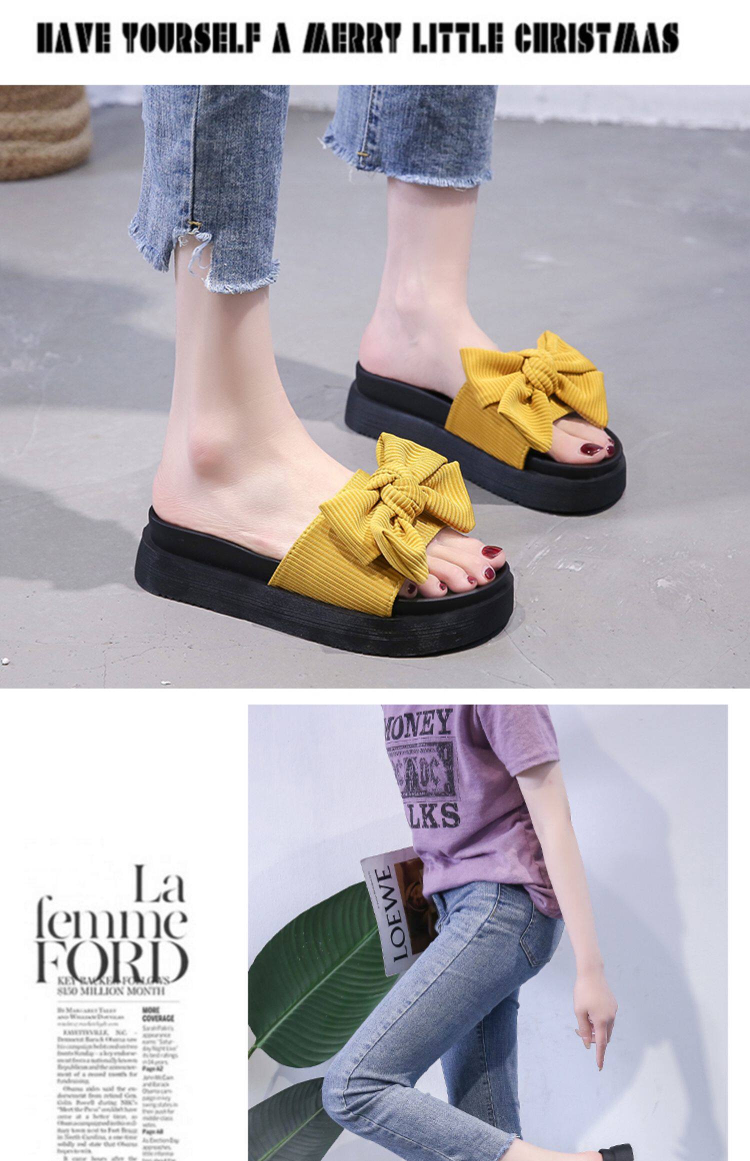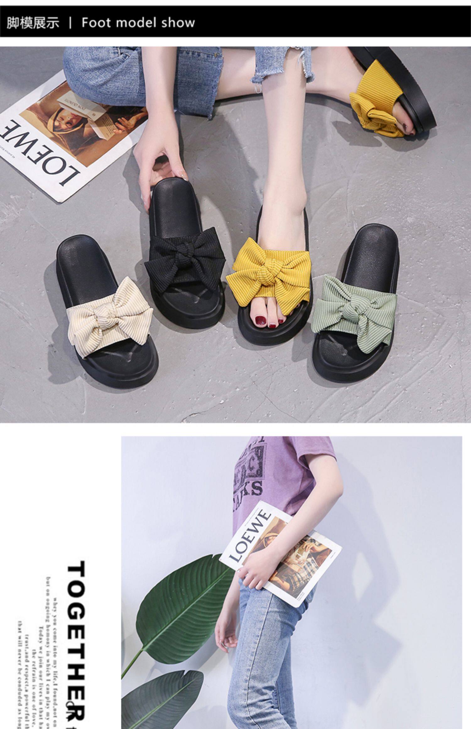 Модные летние слайдеры, универсальные тапочки на платформе с бантиком, 2022, в корейском стиле