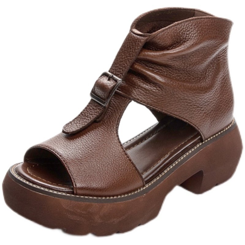 Универсальная модная обувь в европейском стиле, босоножки на высоком каблуке из коровьей кожи, женские босоножки на платформе с открытым носком и толстой подошвой, женские римские туфли на танкетке