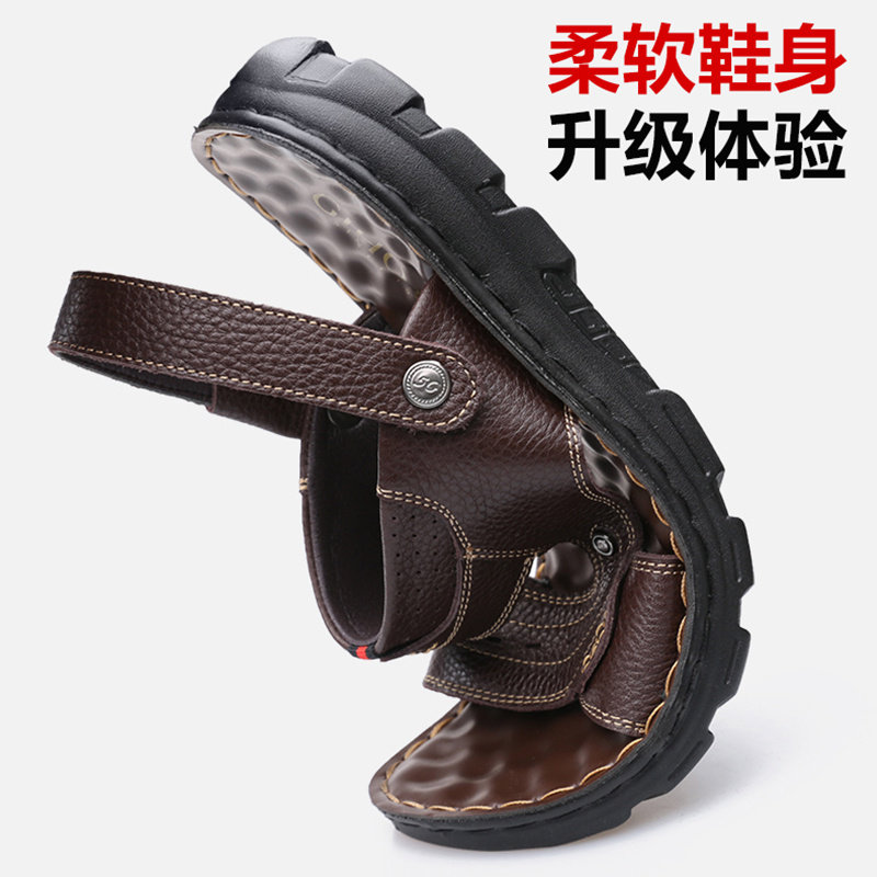 Летние сандалии для отдыха, мужская пляжная обувь, слайдеры, тапочки, коллекция 2021, из натуральной кожи