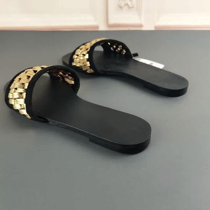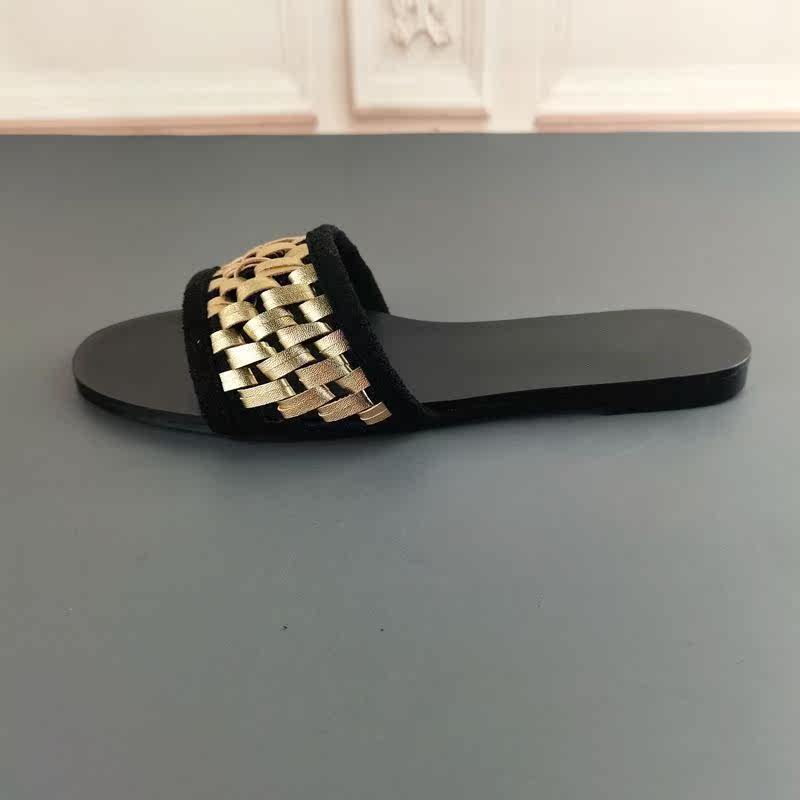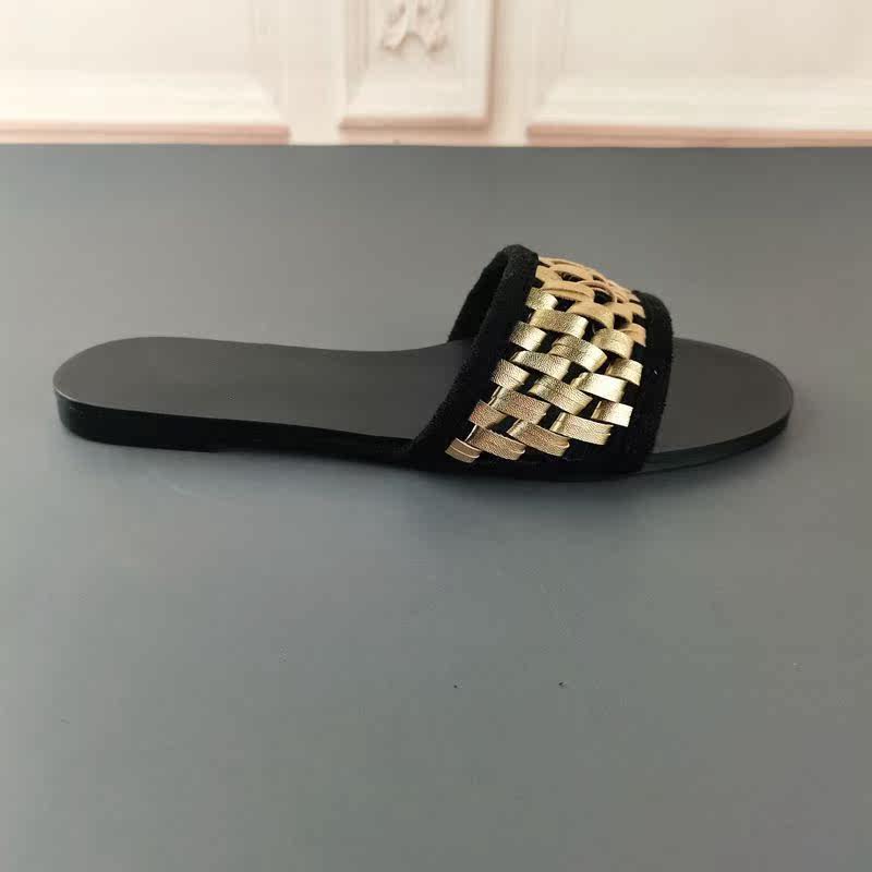 Новая повседневная обувь ранней весны в Испании 2022, верхняя одежда из микрофибры, универсальные пляжные сандалии на плоской подошве с золотой оплеткой.