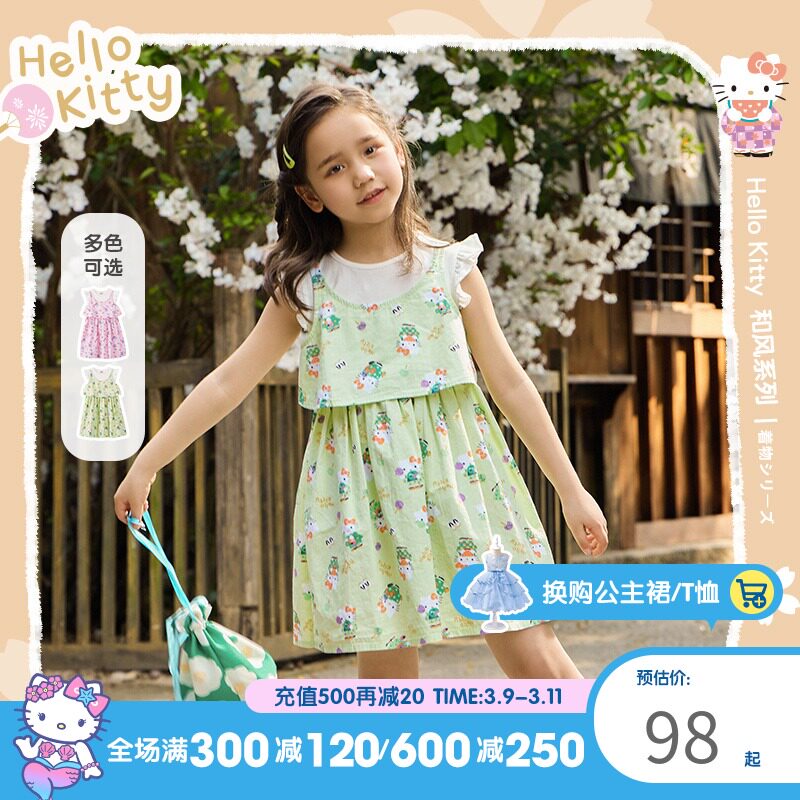 Hello Kitty, летнее милое платье без рукавов для принцессы для отдыха, детская одежда, подходит для подростков, в цветочек