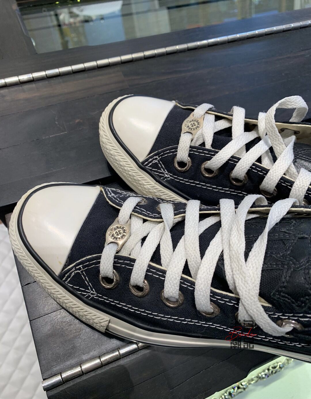 Chrome Hearts Crox Converse Converse Leather Cross Cross Silver Silver Low Glutter Thoans