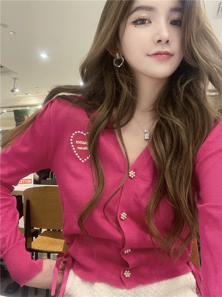 Трикотажный красный короткий свитер, приталенный летний кардиган, V-образный вырез, с вышивкой, 2021 года