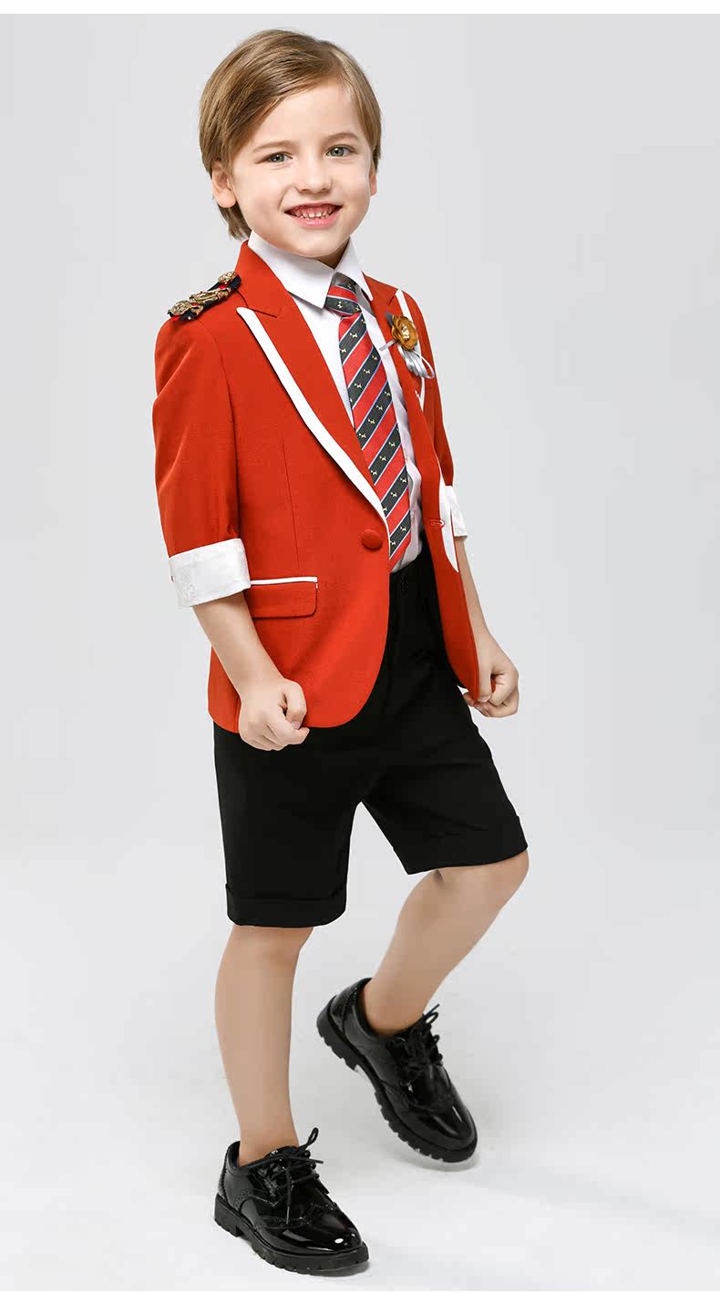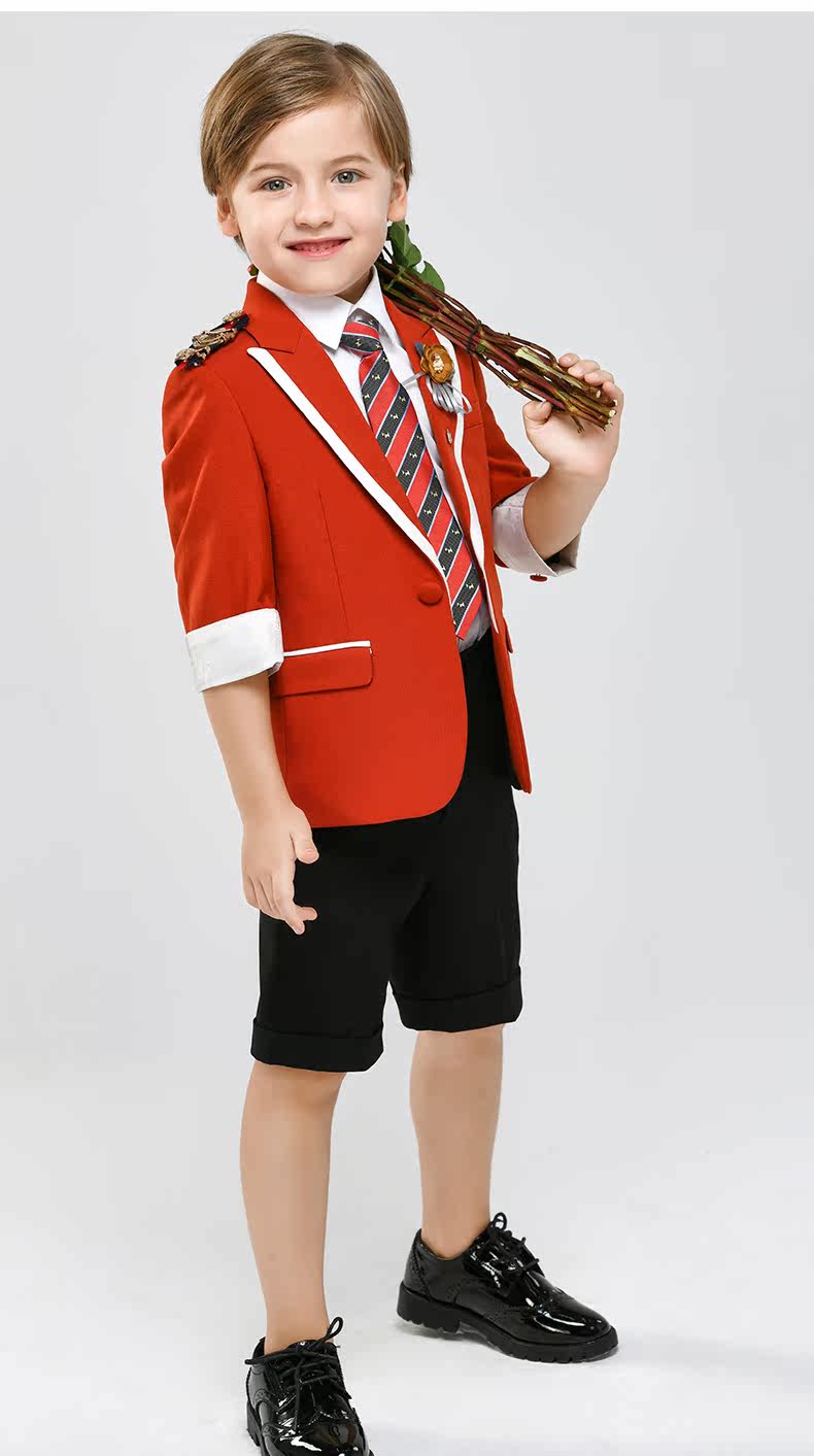 Летние детские китайские нарукавники, комплект, наряд для музыкальных выступлений, короткий костюм мальчика цветочника, короткий рукав, детская одежда