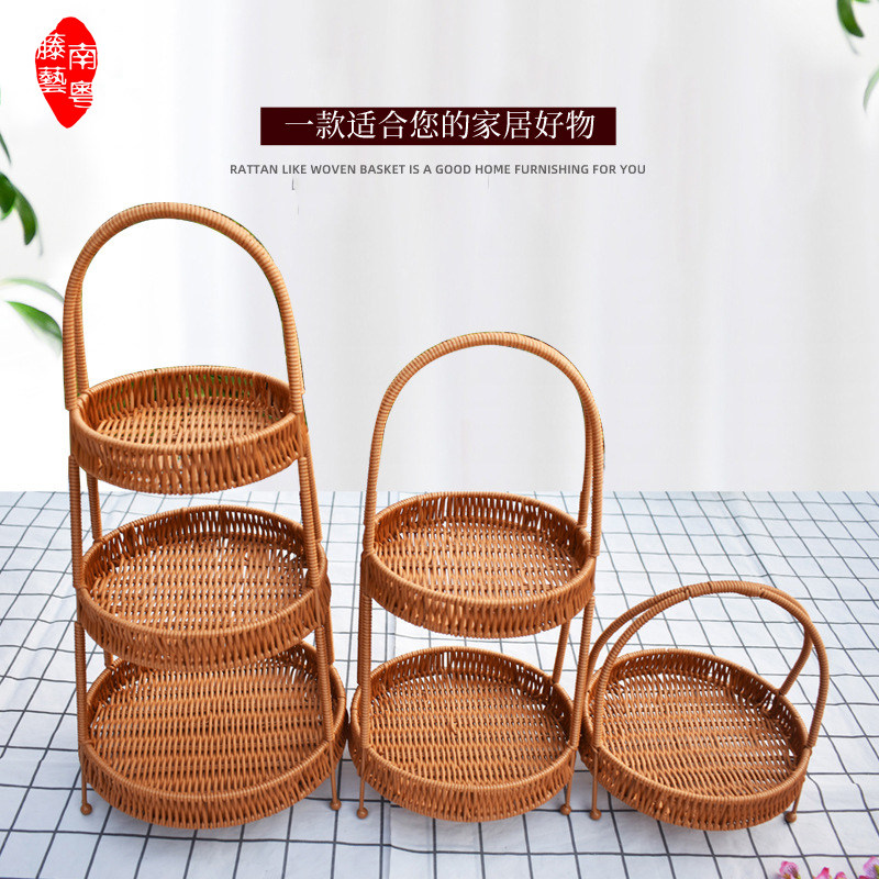 Многослойная корзина для хлеба, корзина для закусок, овощная корзина, корзина для хранения фруктов из ротанга, портативная витрина, бамбуковая корзина, пасторальный стиль, китайский стиль