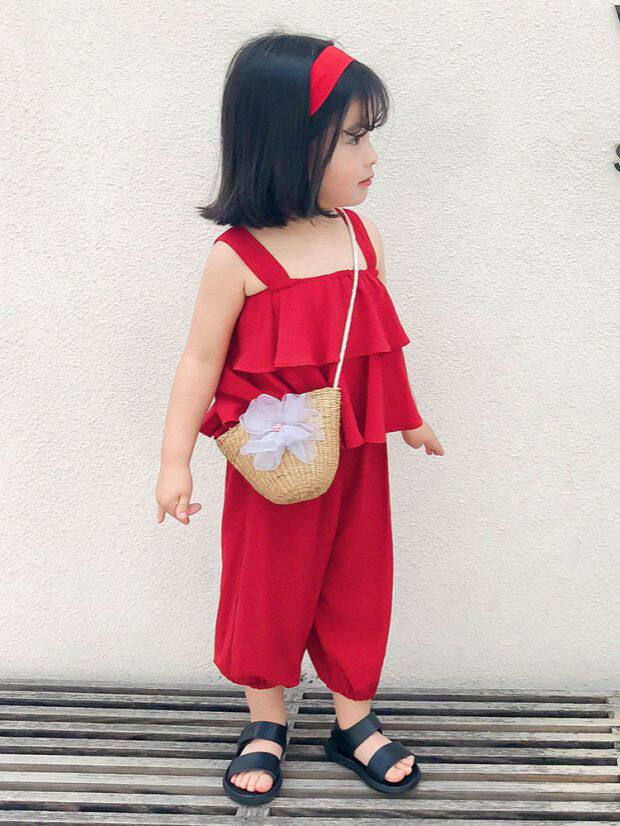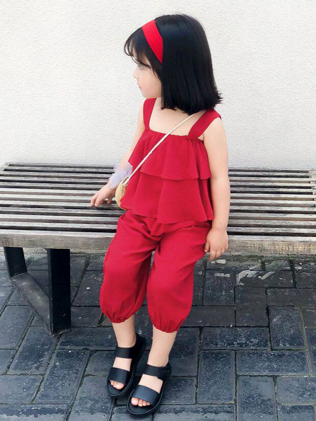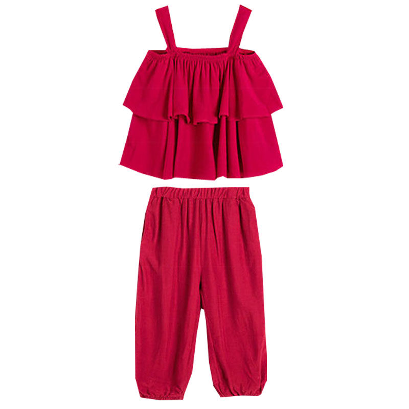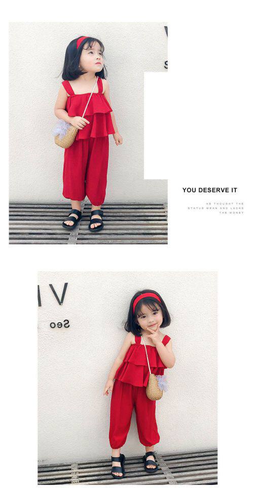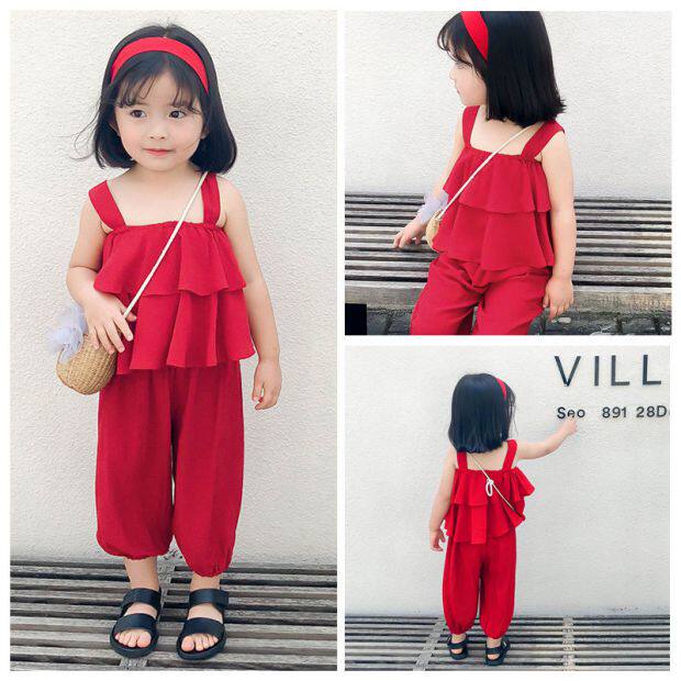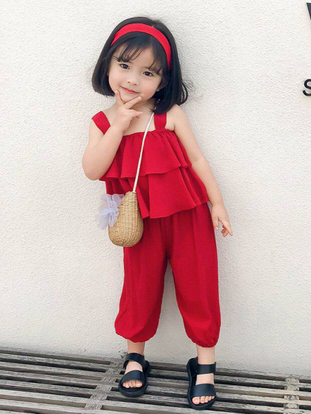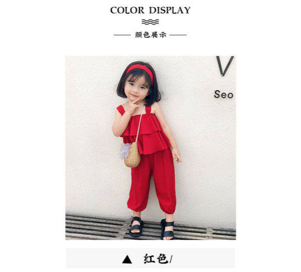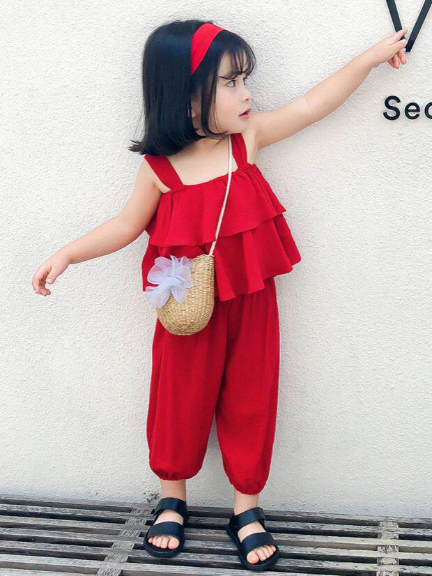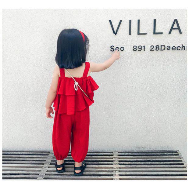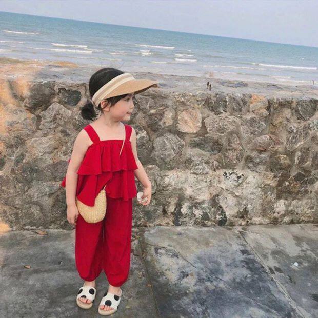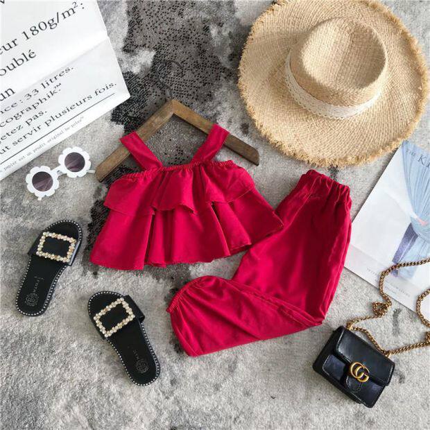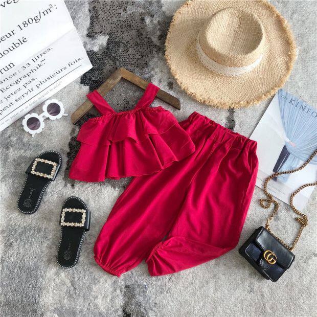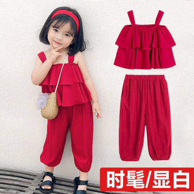 Летний комплект для девочек без рукавов, пляжный фонарь, штаны, детская одежда, популярно в интернете, эффект подтяжки