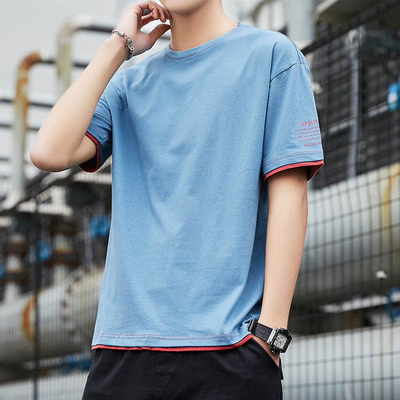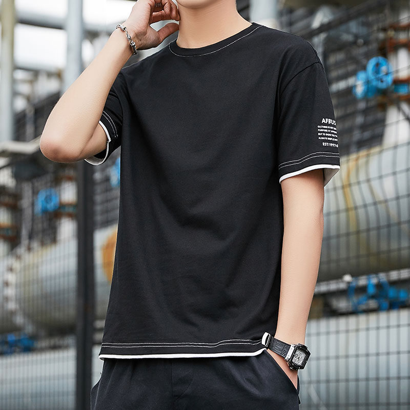 Летняя трендовая хлопковая приятная телу футболка с коротким рукавом с круглым воротником для отдыха, в корейском стиле