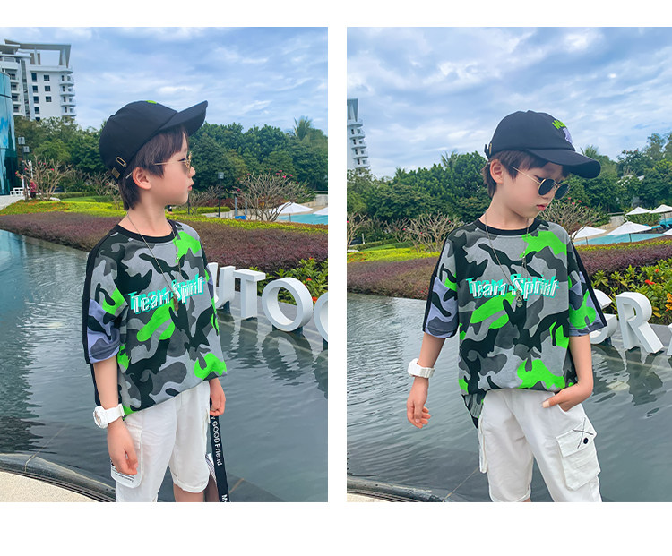 左西 Летняя одежда, детская камуфляжная хлопковая футболка с коротким рукавом, подходит для подростков, коллекция 2021