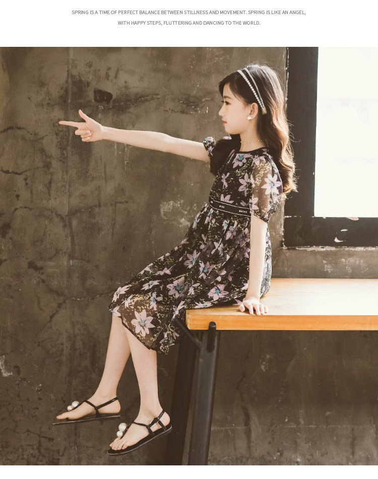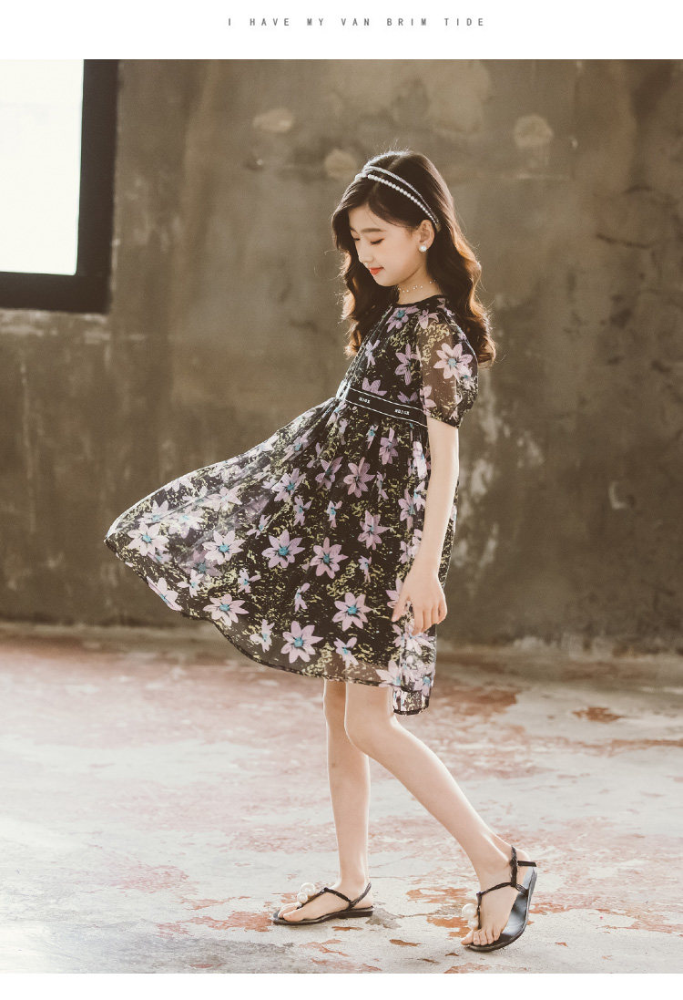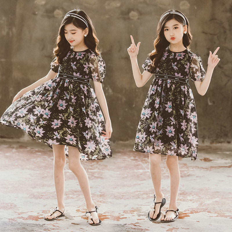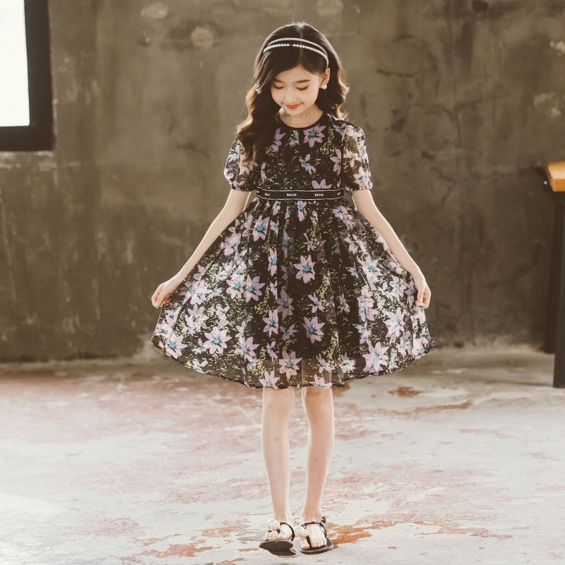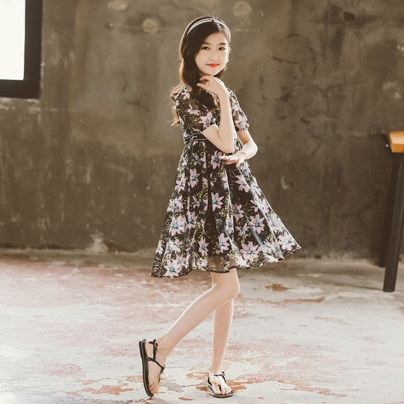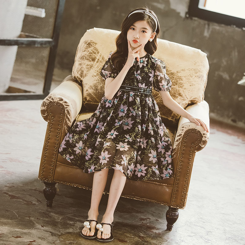 Летнее платье, шифоновая юбка на девочку, наряд маленькой принцессы, в корейском стиле, подходит для подростков, в западном стиле
