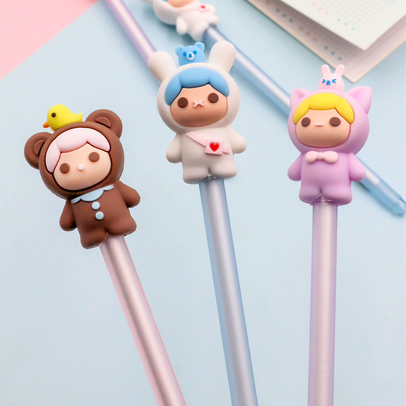 Мультяшная силиконовая черная ручка-роллер с животными для школьников и студентов, подарок на день рождения