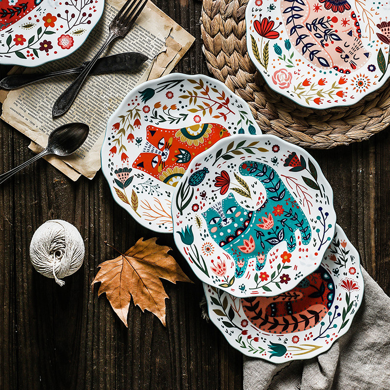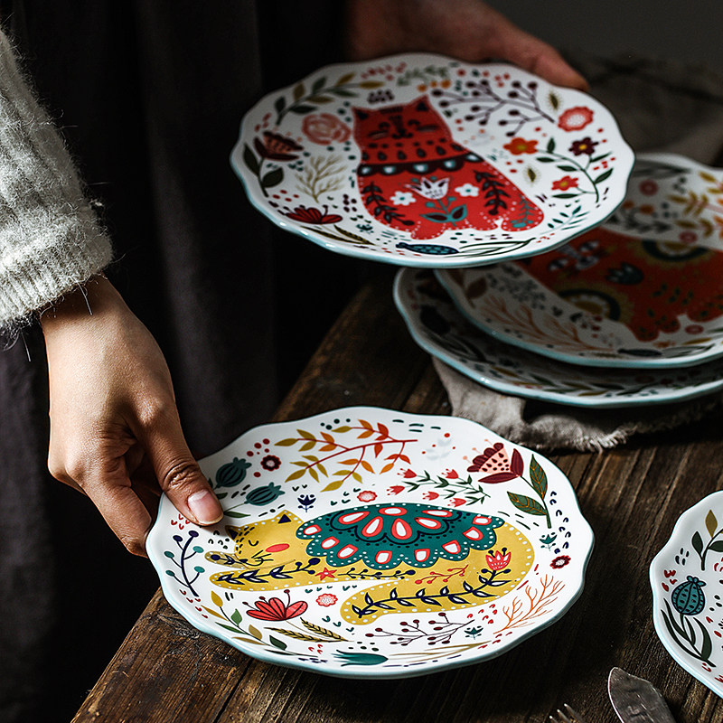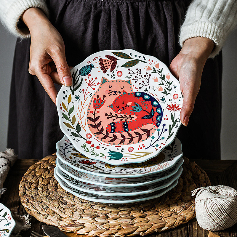 Zetenjia креативная мультяшная ручная роспись тарелка для завтрака бытовая керамическая посуда тарелка для овощей тарелка для фруктовых закусок тарелка для западной еды