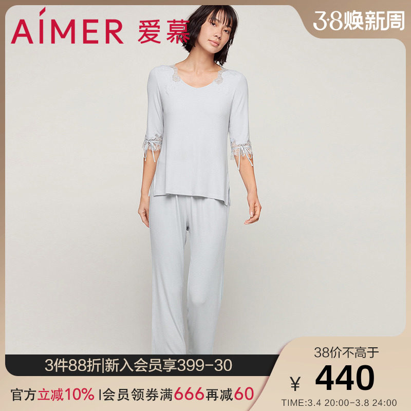 爱慕 Пижама Женская летняя летняя модальное волокно пять рукавовых рукавов можно носить за пределами AM465601
