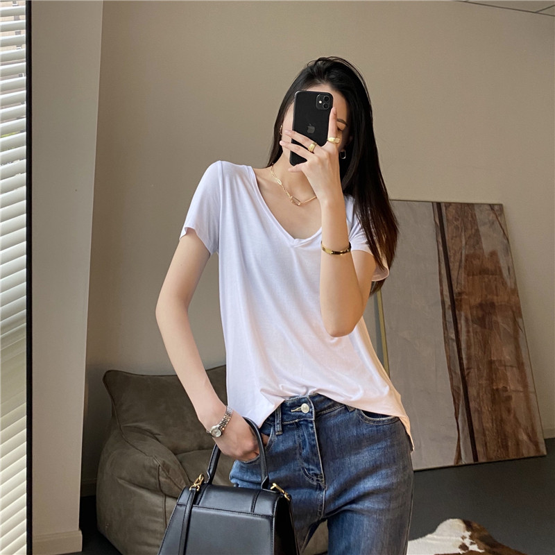 C033004 в Blue отправляется в Канаду ~ 莼Нажмите мягкий стук в дикий V -neck Pure Color Короткий -