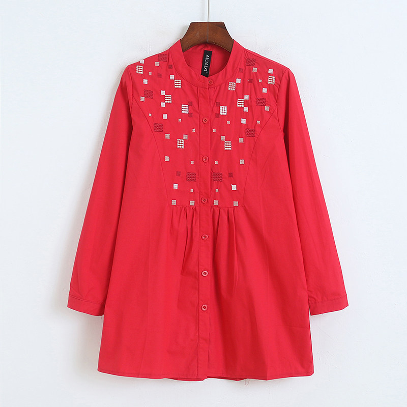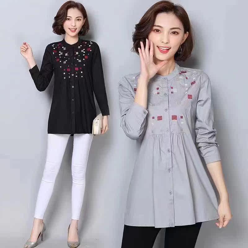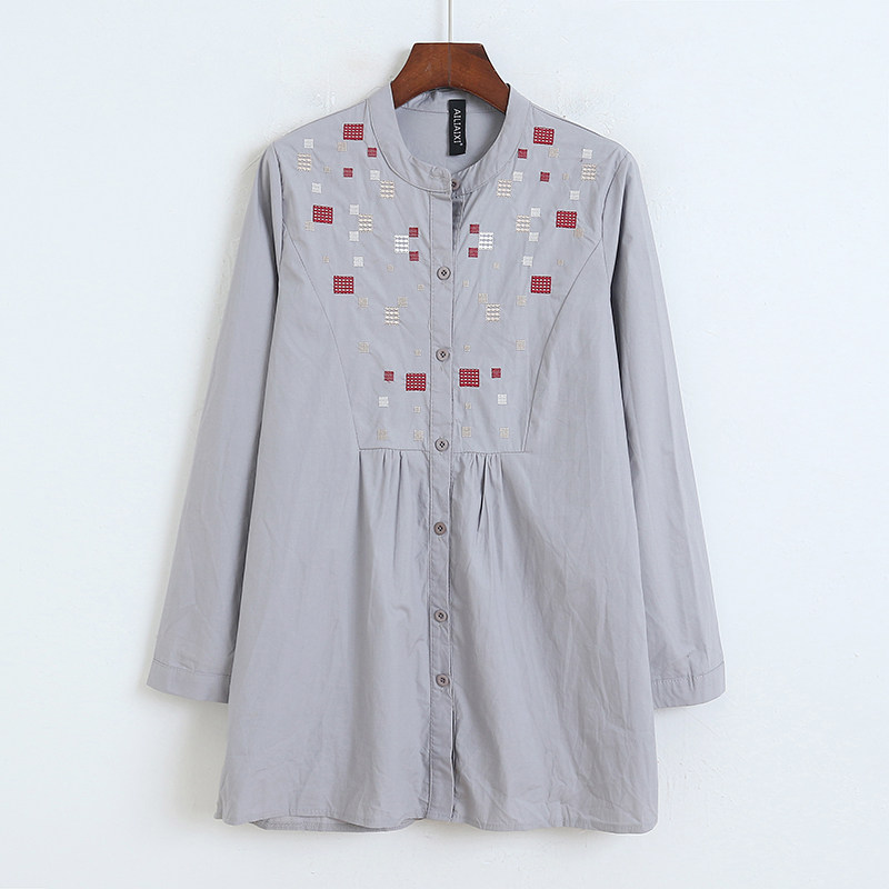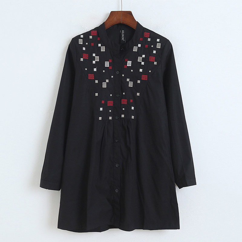 Длинная рубашка с круглым воротником, осенний лонгслив, средней длины, с вышивкой, свободный крой