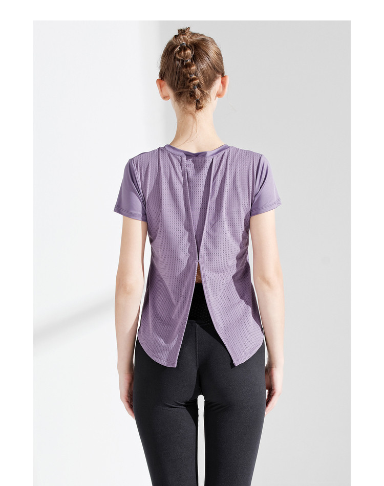 艾米恋 Спортивная летняя футболка с круглым воротником для спортзала, эластичная быстросохнущая дышащая тонкая одежда для йоги, короткий рукав, по фигуре