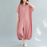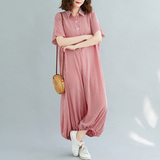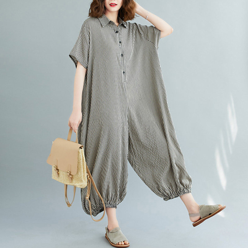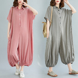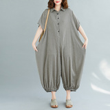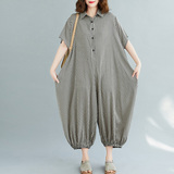 Рубашка, комбинезон, штаны, фонарь, из хлопка и льна, свободный крой, короткий рукав