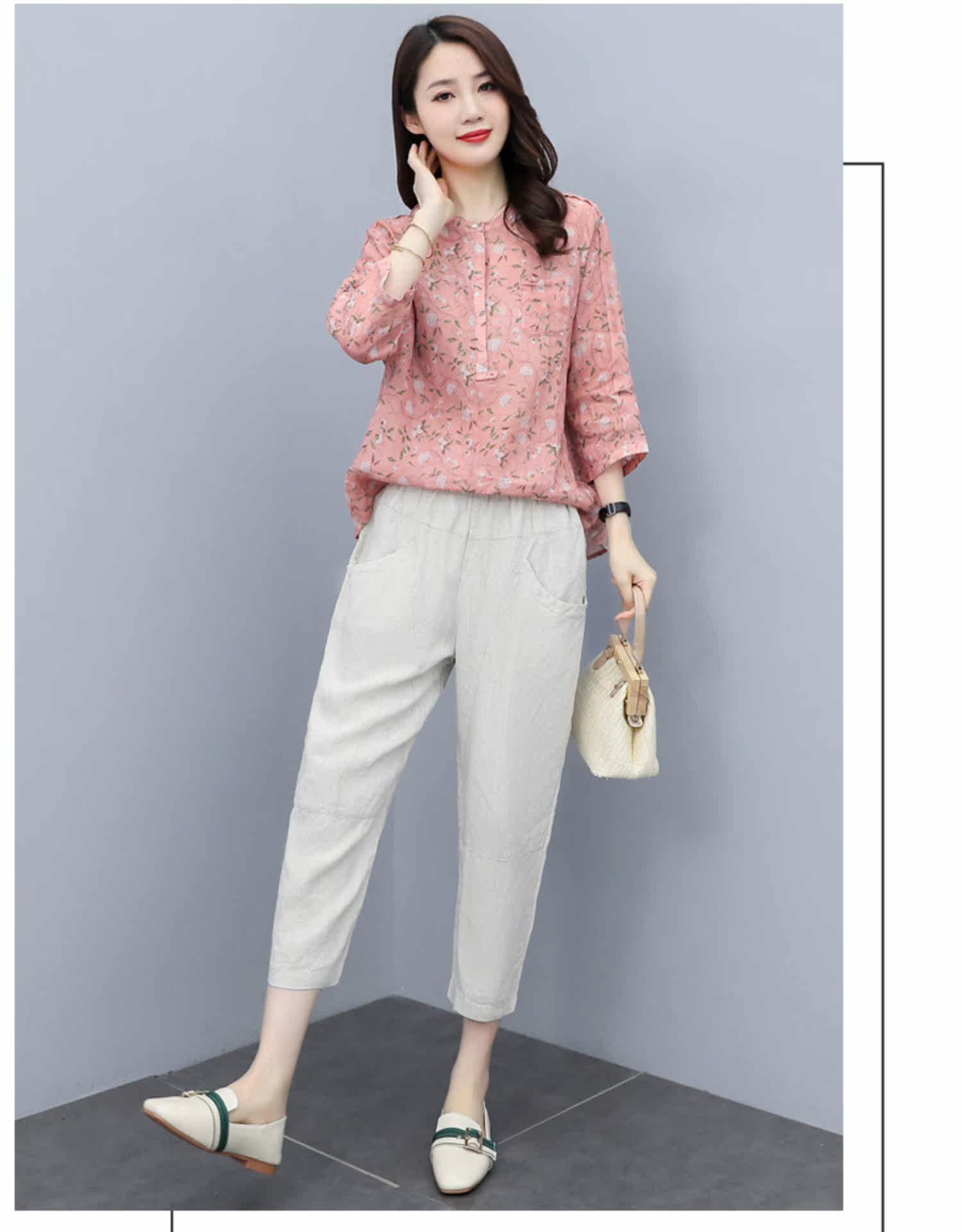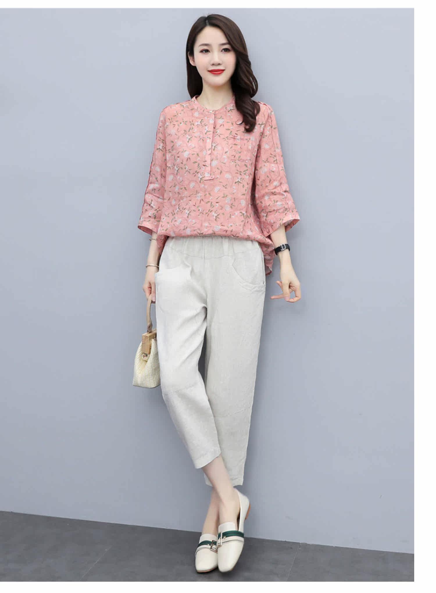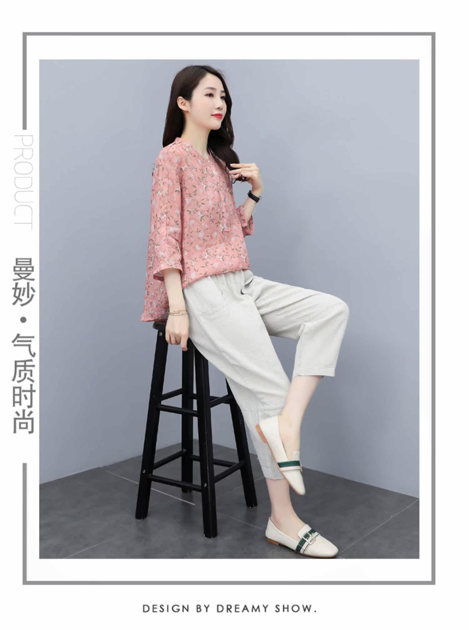 Шифоновый комплект для отдыха, в западном стиле, сезон 2021, короткий рукав, из хлопка и льна