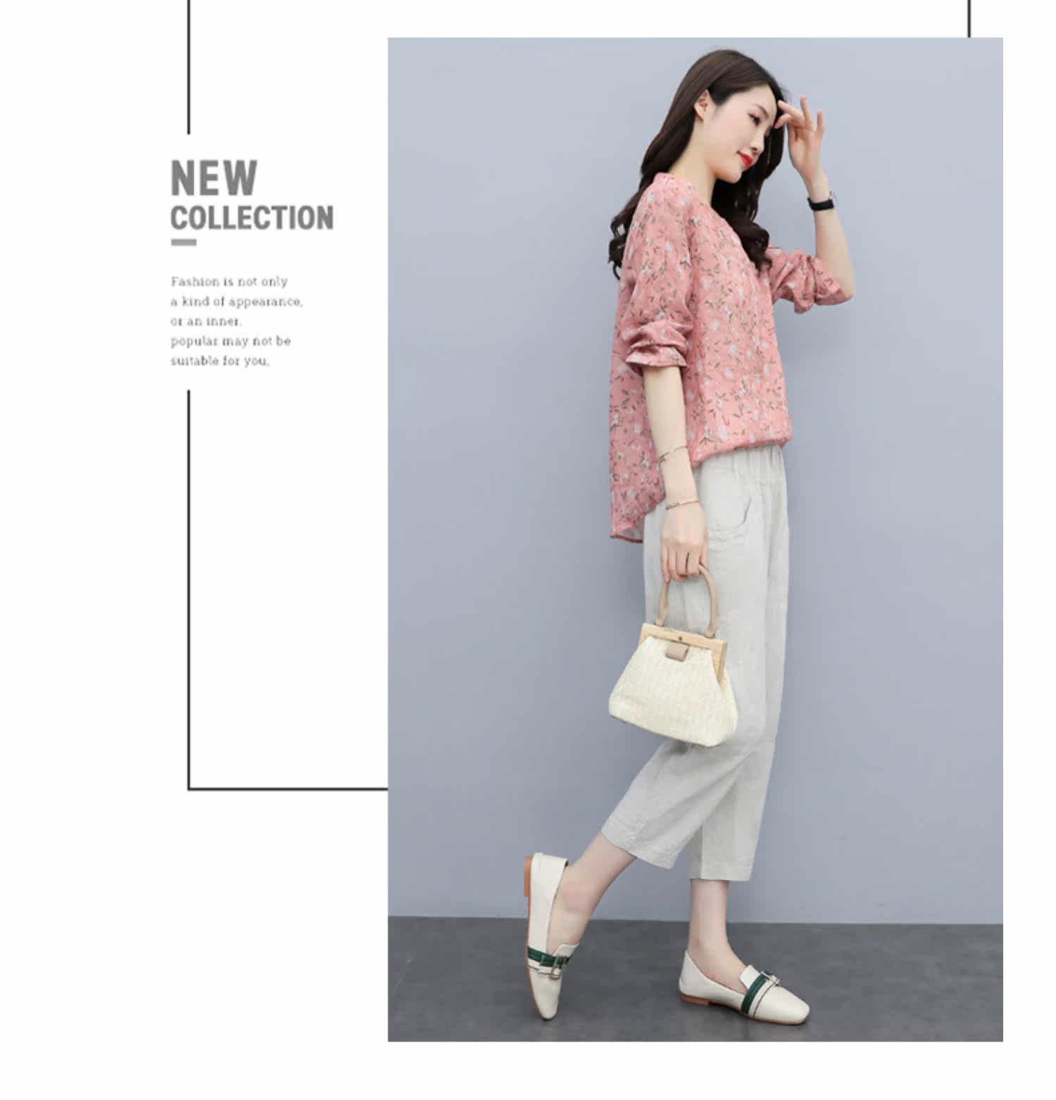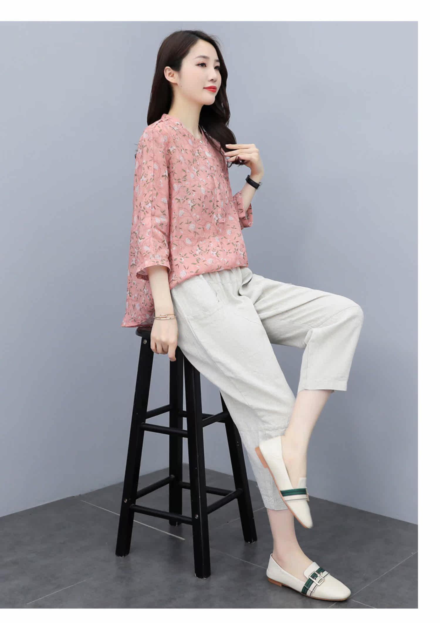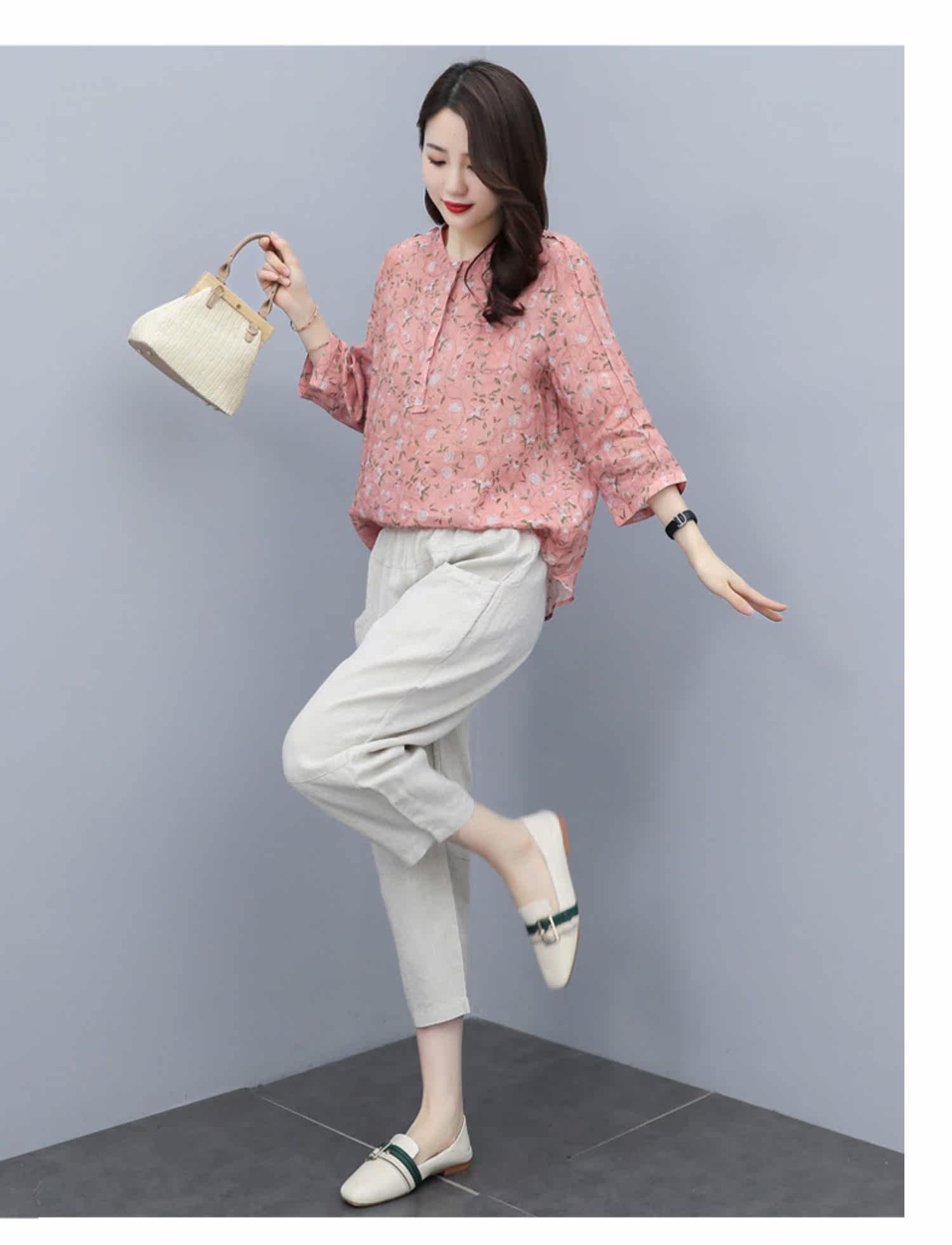 Шифоновый комплект для отдыха, в западном стиле, сезон 2021, короткий рукав, из хлопка и льна