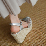Мисили наклонные сандалии женщины 2024 летние новая соломенная фея, толстая долю римская обувь европейские и американские женские женские туфли