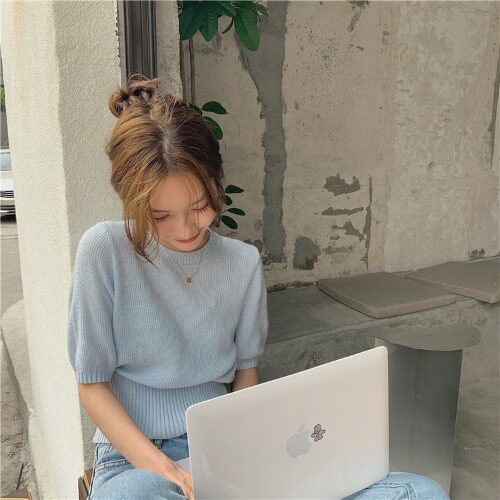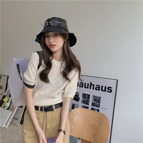 Трикотажный летний тонкий свитер, короткий приталенный базовый приятный телу корсет, зеленая футболка, 2021 года, короткий рукав